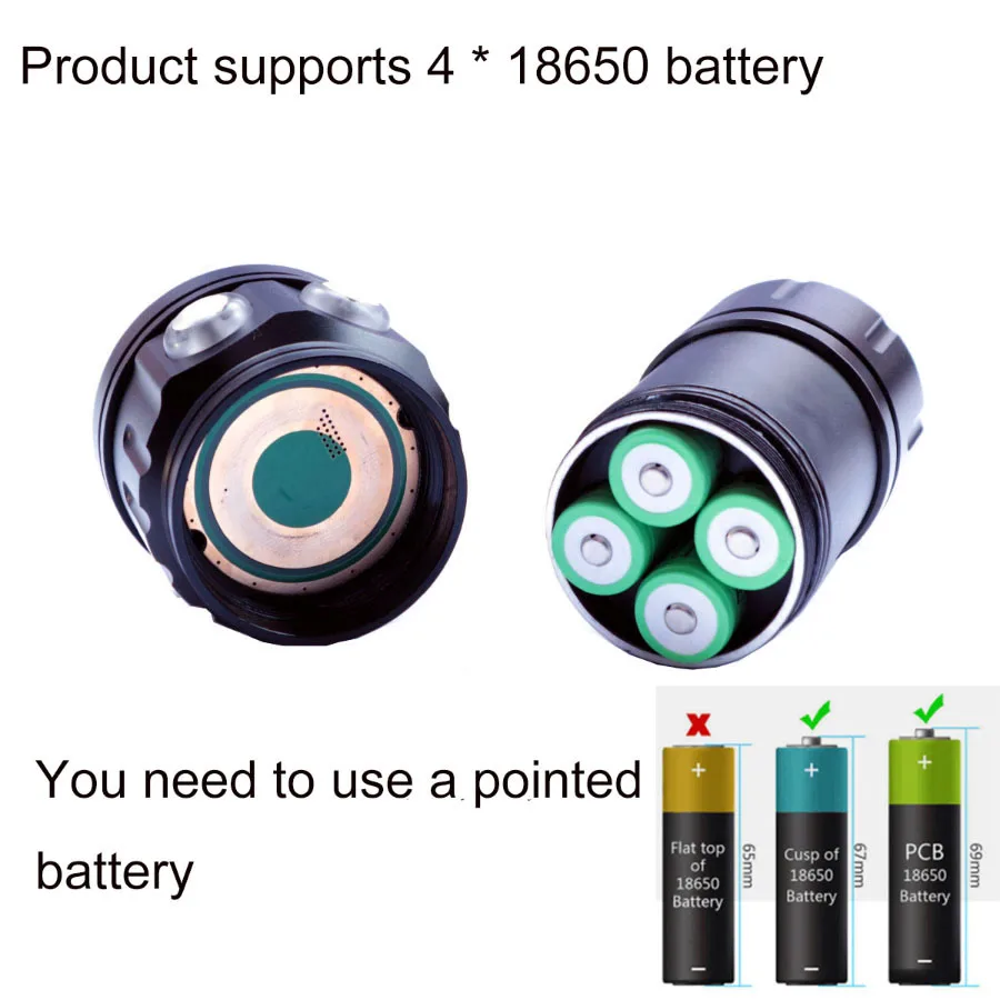 1:Обратите внимание, что фонарик очень мощный и требует много тока. Рекомендуется использовать аккумулятор питания, скорость разрядки батареи может достигать 3C/ 5C2:Меры предосторожности, фонарик поддерживает использование остроконечного аккумулятора, плоский аккумулятор не может касаться печатной платы, и фонарик не может использоваться нормально