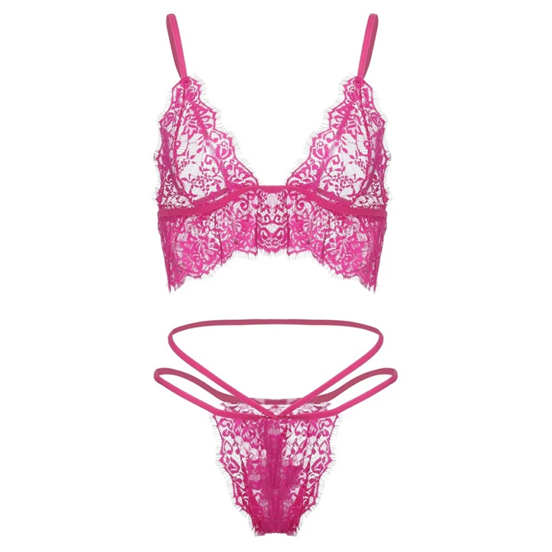 Женский кружевной бюстгальтер с глубоким V-образным вырезом и стринги