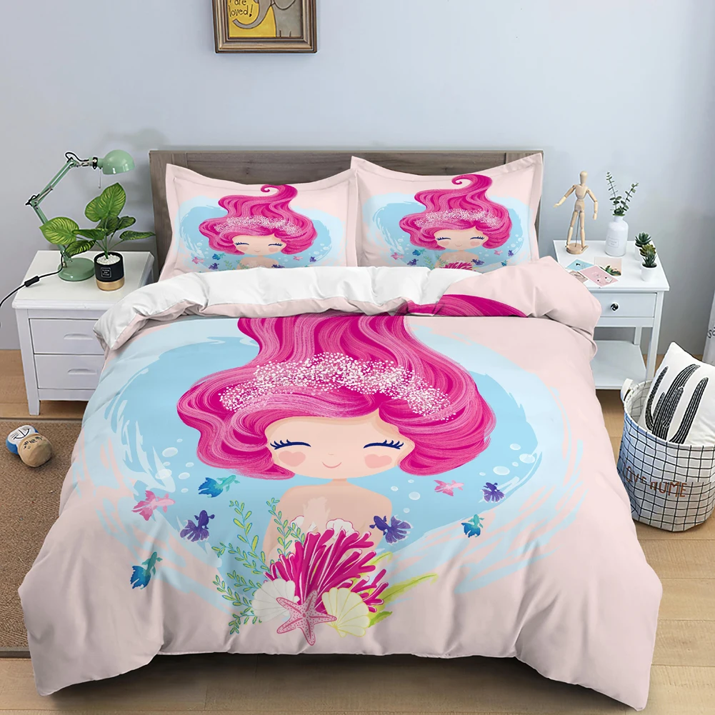 3D Русалка пододеяльник двойной 210x21 0 Постельное белье 2/3 шт. Стёганое одеяло крышка с застежкой-молнией, стеганое одеяло, размеры: комплект для обычной двухстальной для детей для девочек постельное белье