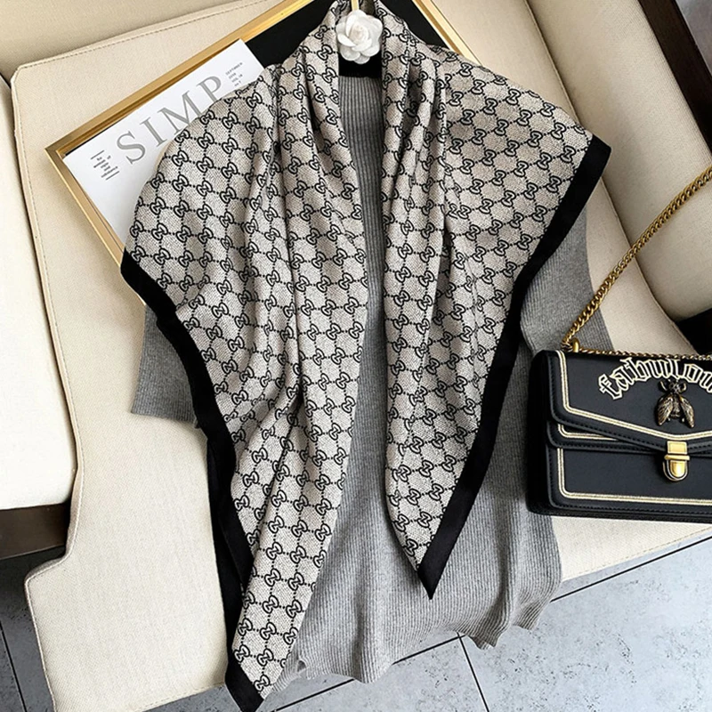 Классический большой квадратный шарф 90 см, Женский саржевый принт ...