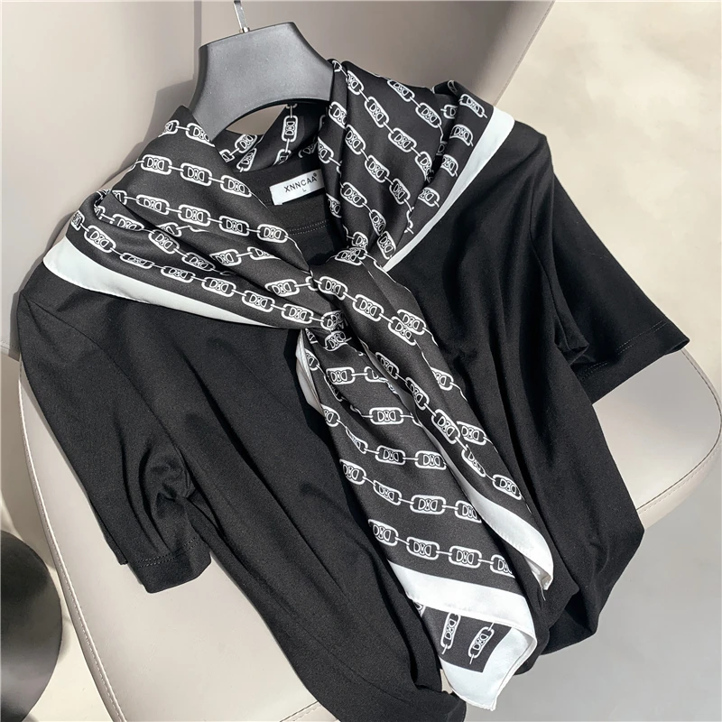 Роскошная брендовая саржевая шелковая шаль-бандана, женский шейный платок, модные женские шарфы, платок 90 см