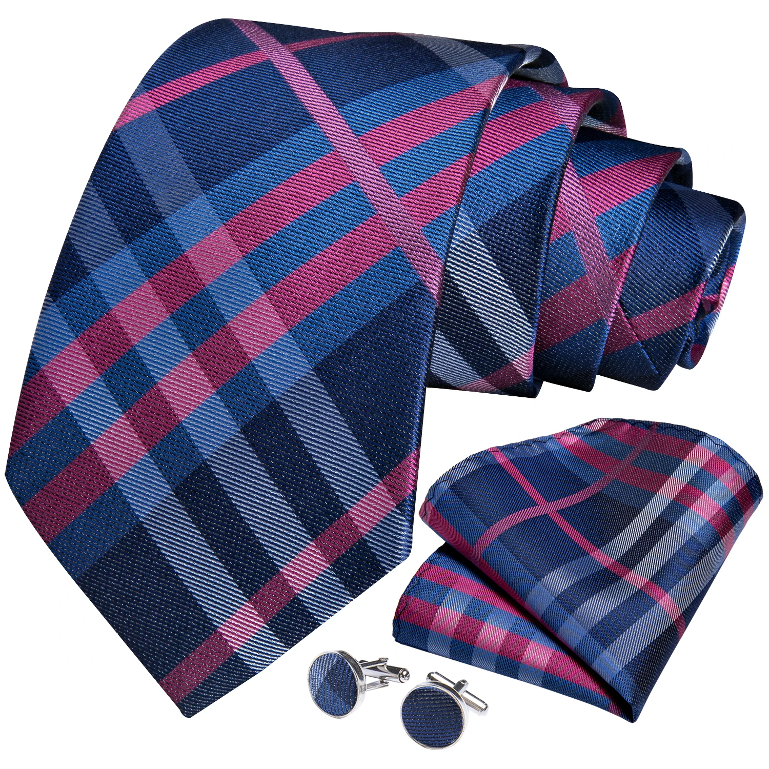 Синий, красный, черный, клетчатый Модный бренд, мужские шелковые галстуки, набор, роскошный свадебный галстук на шею, карманные Квадратные запонки, подарок для мужчин, Прямая поставка