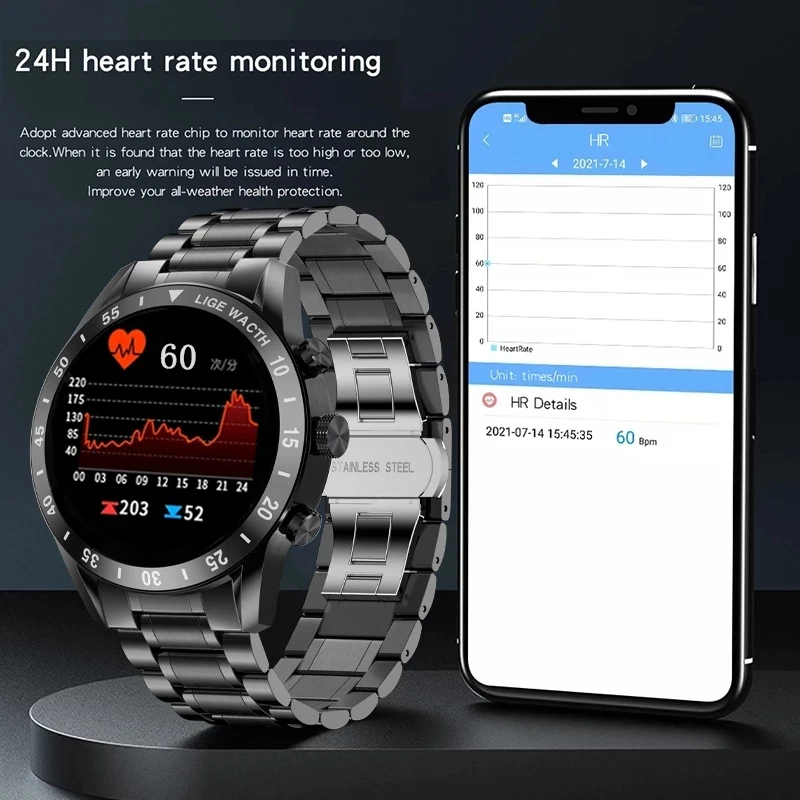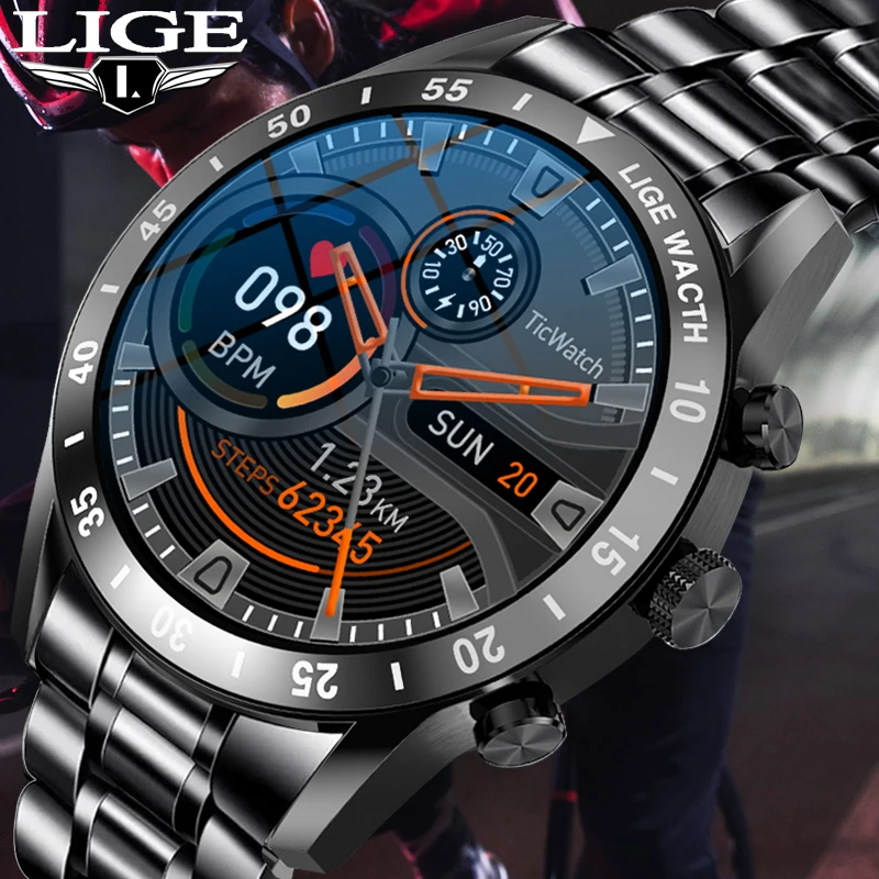 Смарт-часы LIGE мужские с пульсометром и тонометром, водостойкие