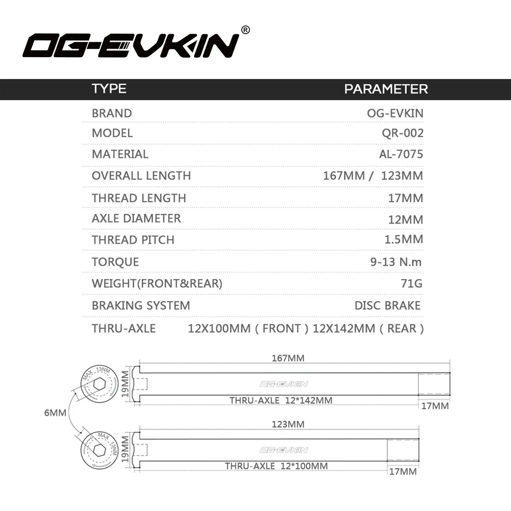 Быстросъемный дисковый тормоз OG-EVKIN M12 P1.5, сквозная ось 12x142 мм, задний12x100 мм, Передний Велосипед, шпажки, дорожный диск, сквозная ось