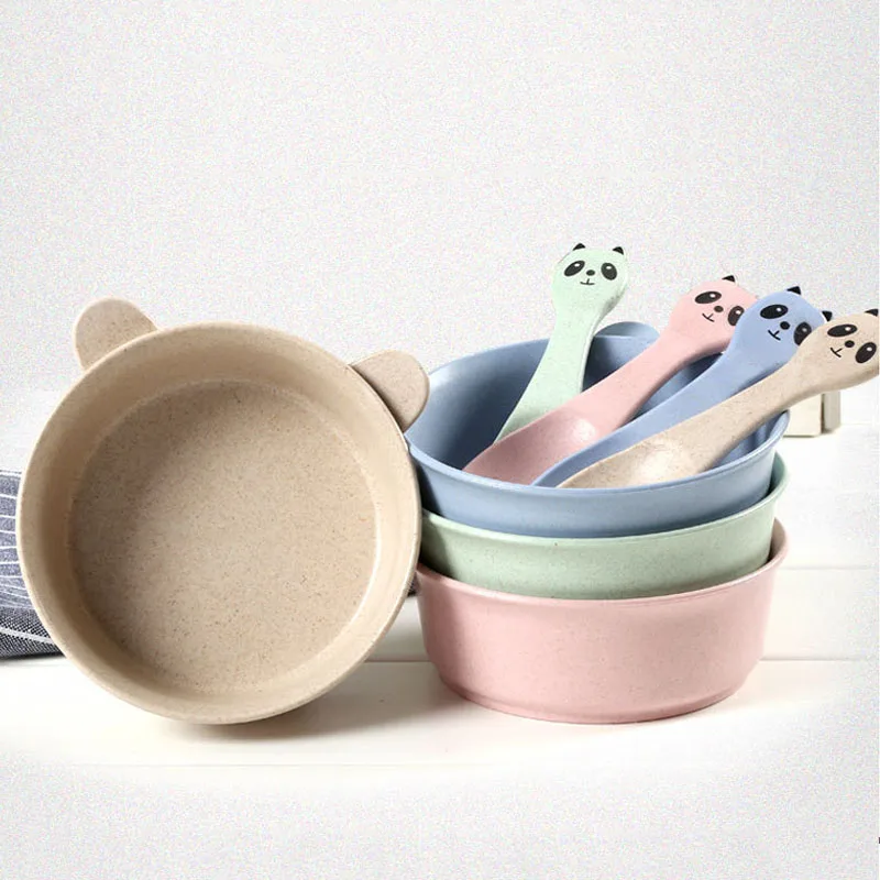 Детская посуда для кормления, мультяшная панда, детские блюда, Пшеничная солома, набор посуды для детского кормления, антигорячая детская тренировочная чаша, ложка
