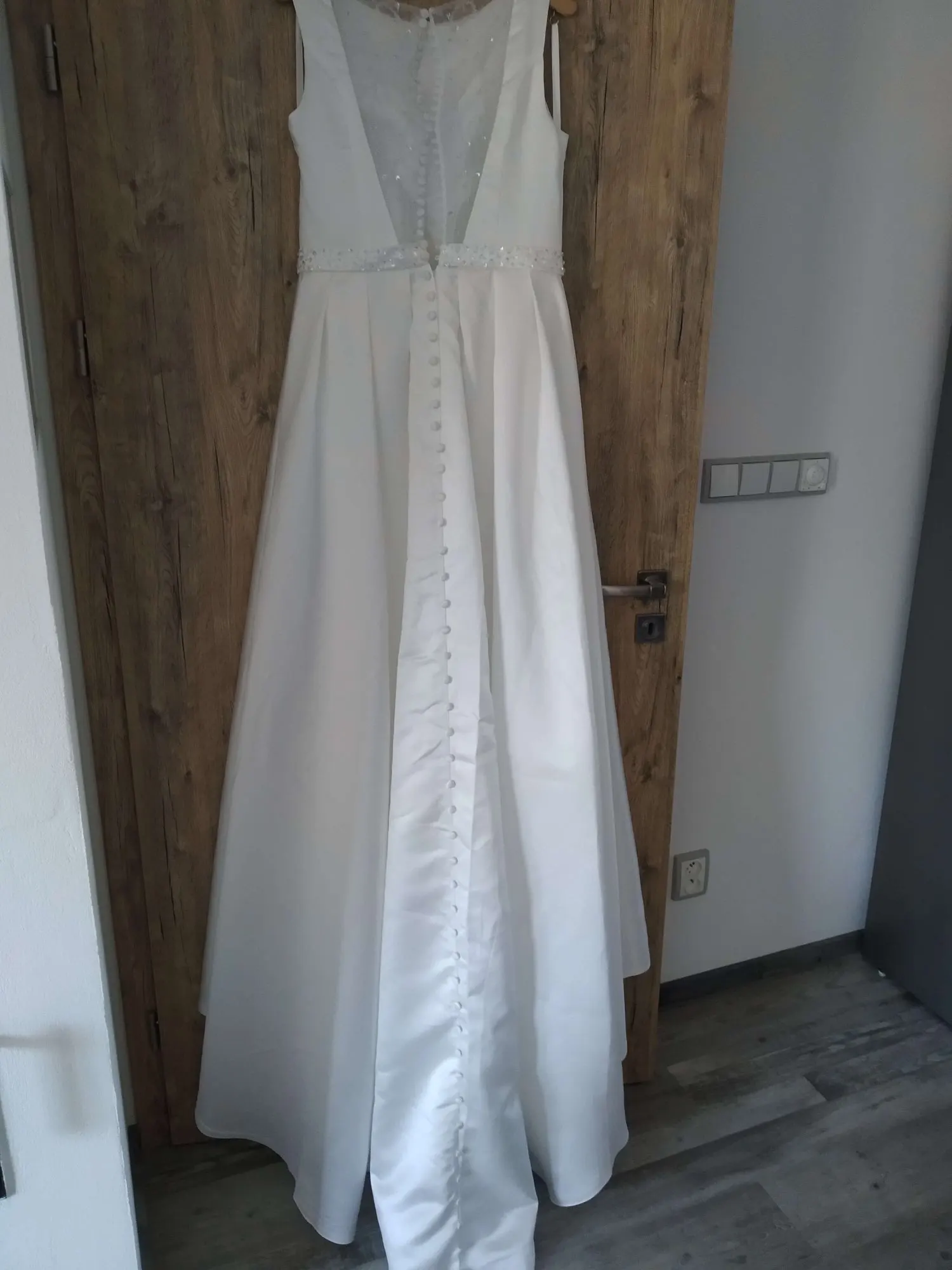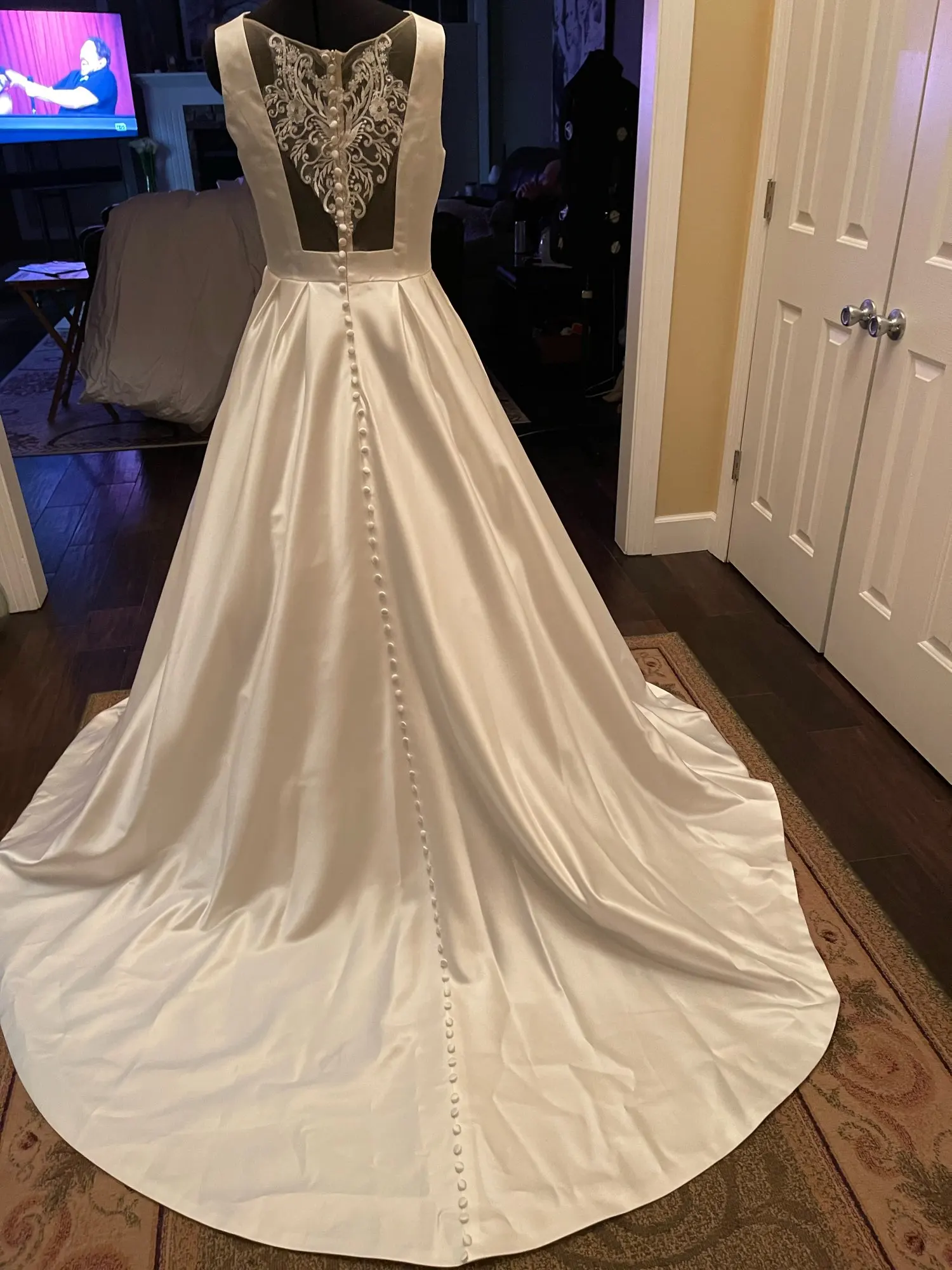 Платье свадебное атласное на пуговицах с V-образным вырезом