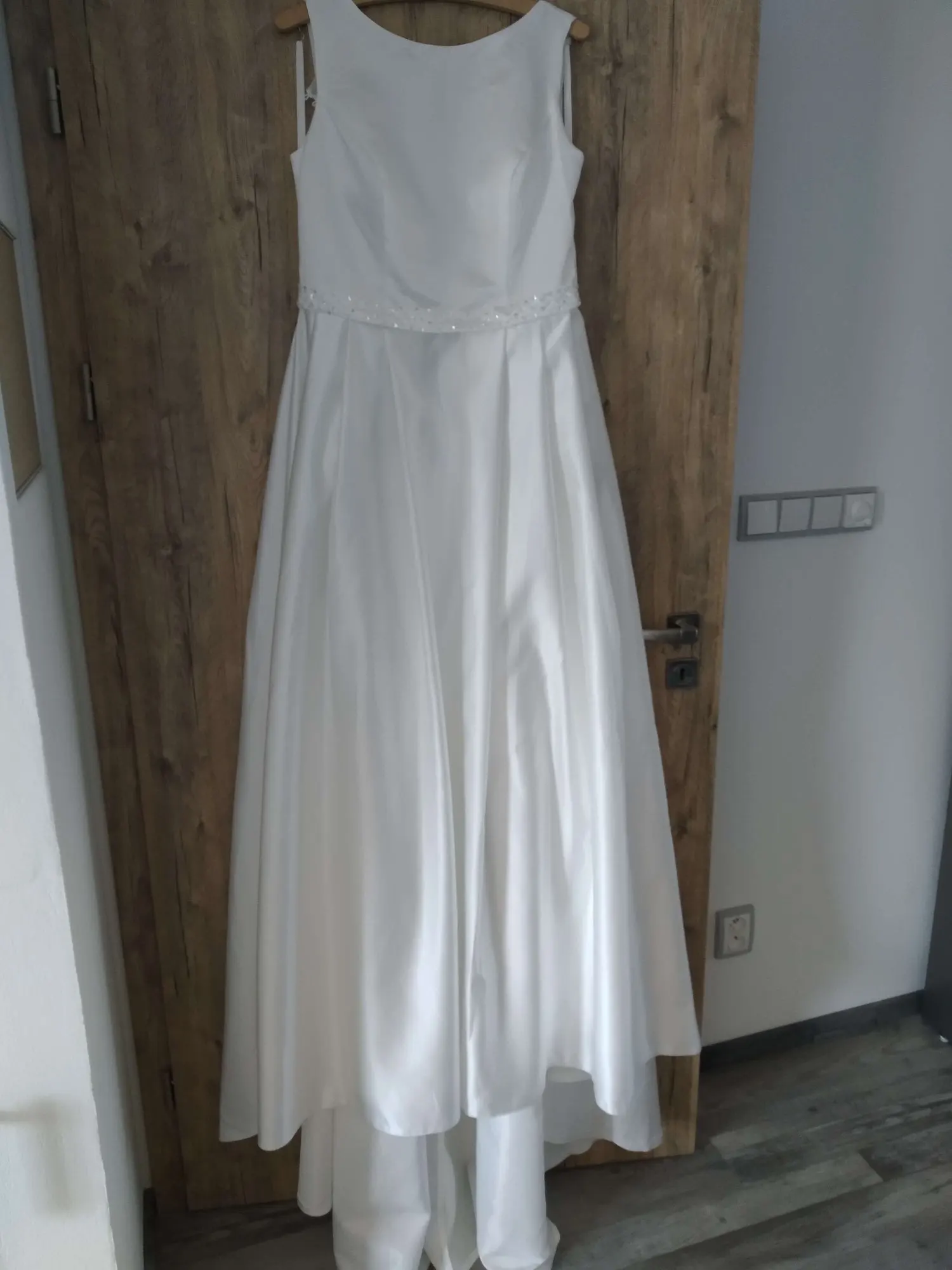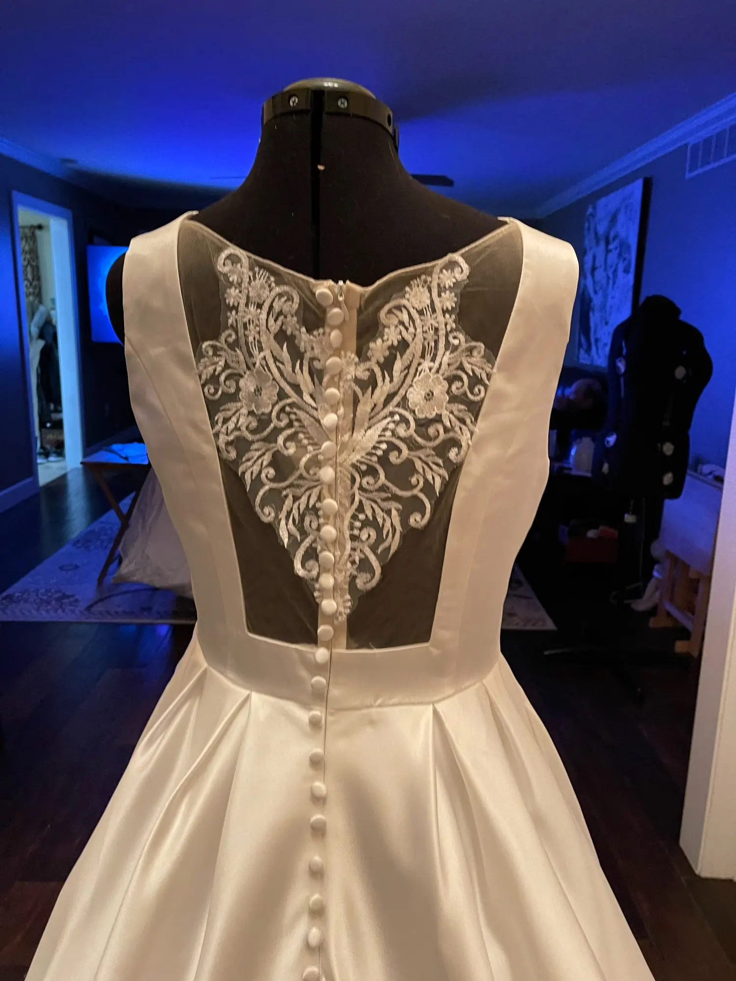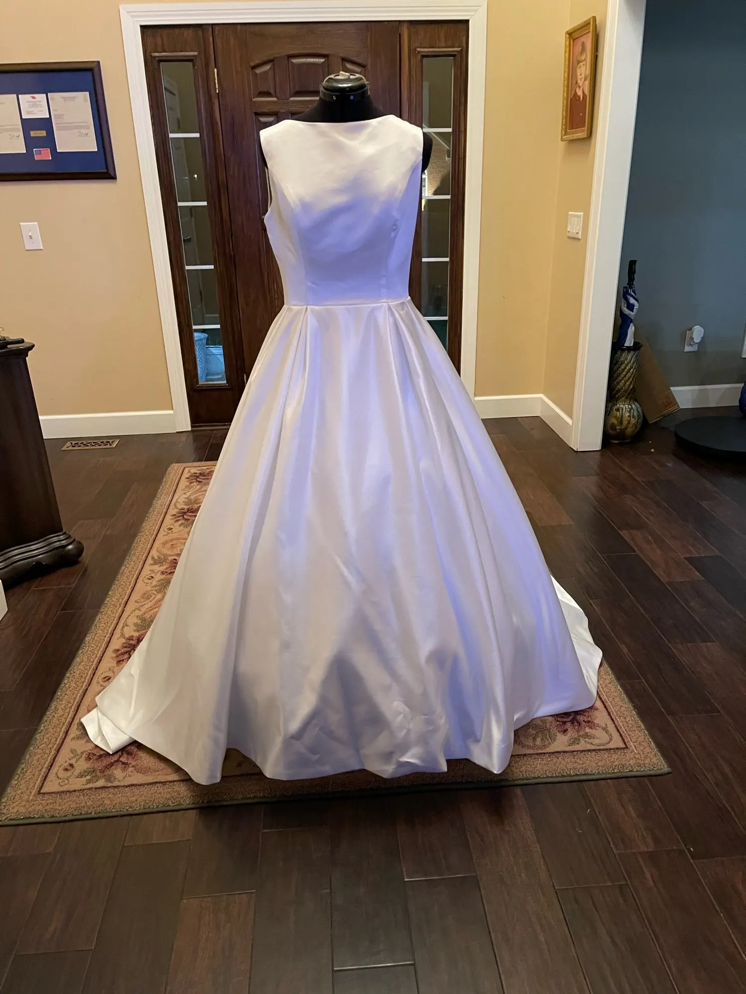 Платье свадебное атласное ТРАПЕЦИЕВИДНОЕ с глубоким круглым вырезом...