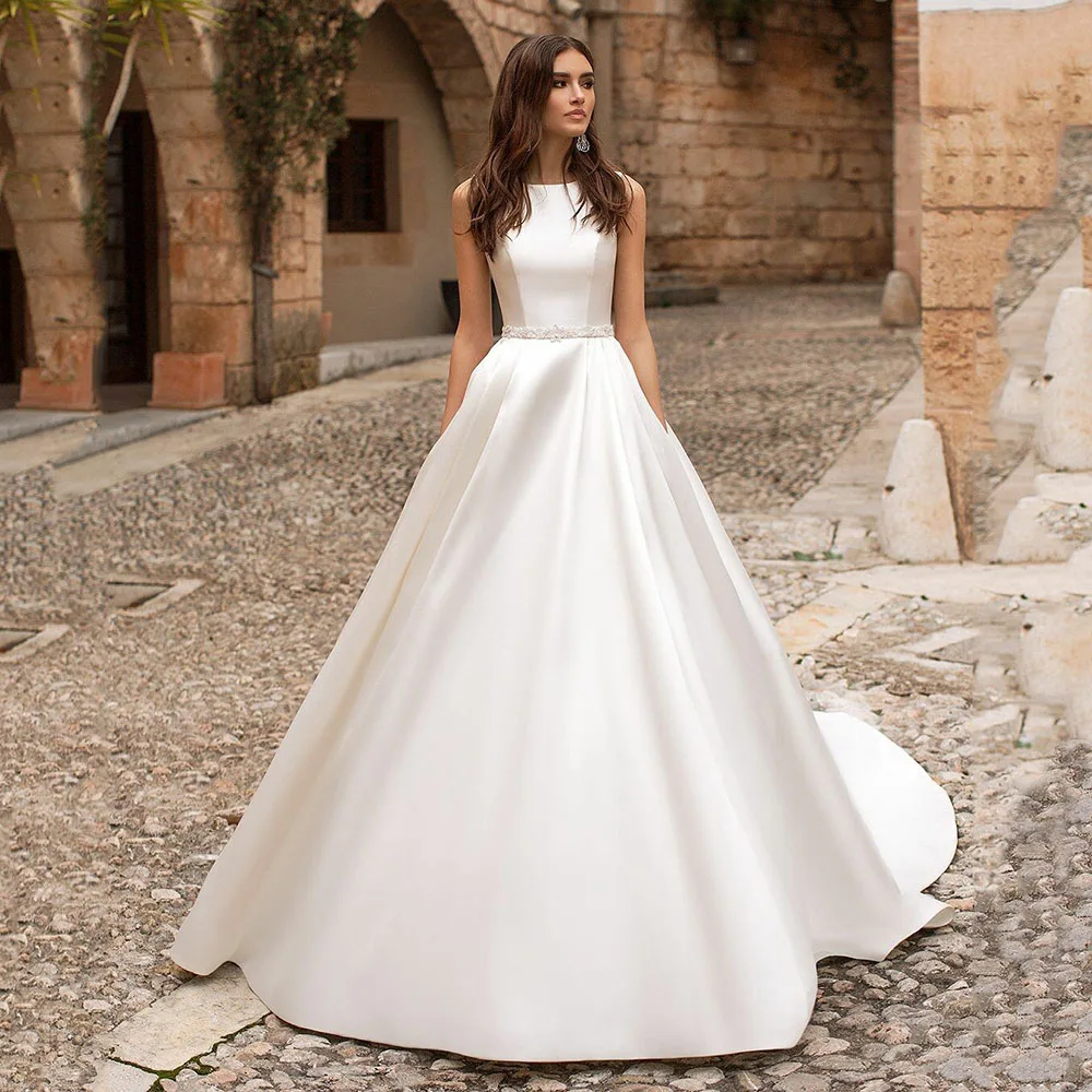 Атласное Бальное Платье soworthy, простое кружевное свадебное плать...