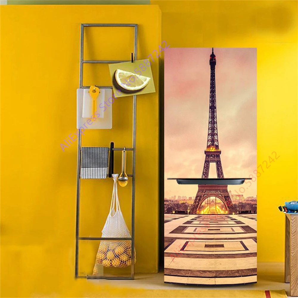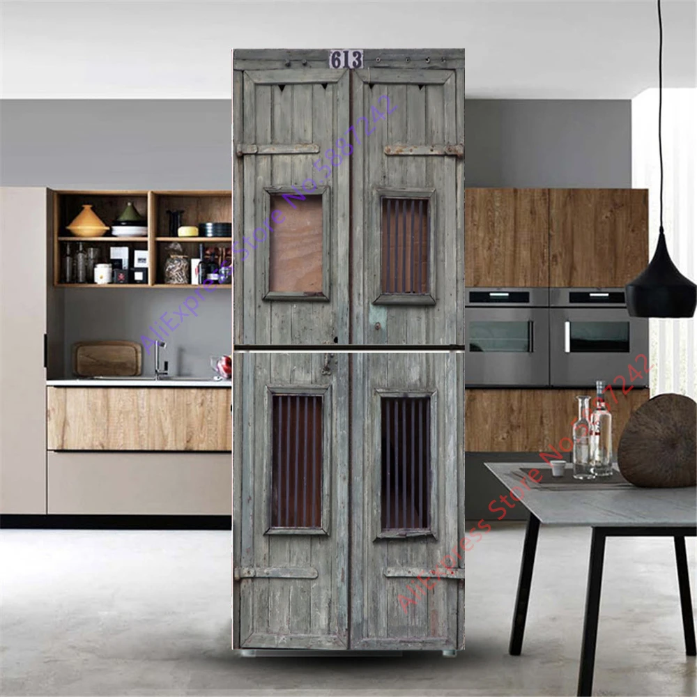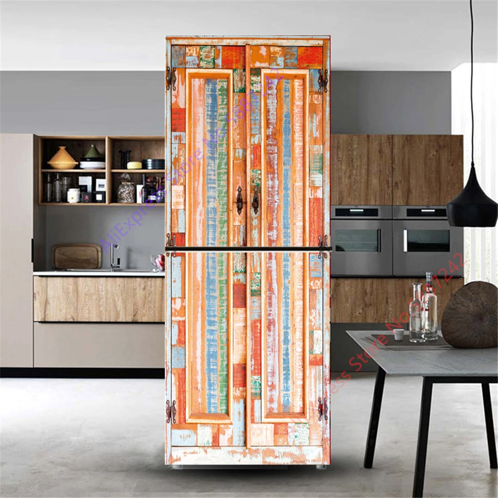 3d деревянная наклейка на холодильник, Виниловая наклейка на холодильник, дверной чехол, полностью самоклеящиеся обои, декоративная пленка на холодильник, наклейка на заказ