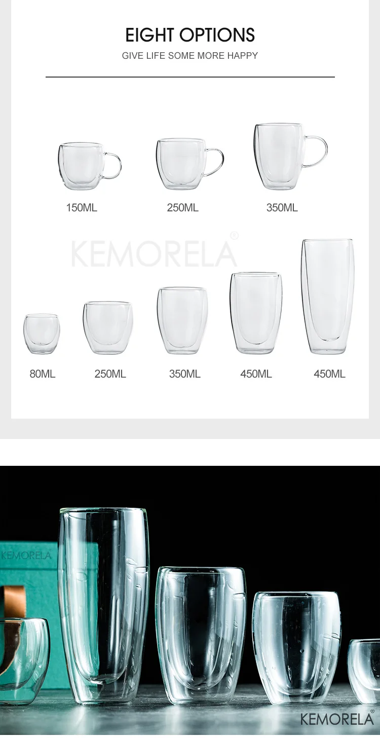 2/4/6 шт. с двойными стенками боросиликатное Стекло Набор чашек для пива эспрессо прозрачный Кофе кофейная кружка в виде Чай виски Стекло чашки Посуда для напитков