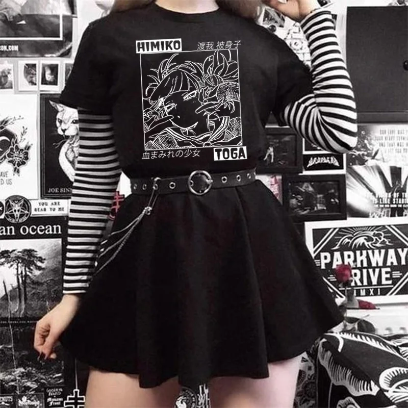 Женская футболка в стиле аниме Харадзюку, черная футболка с принтом...