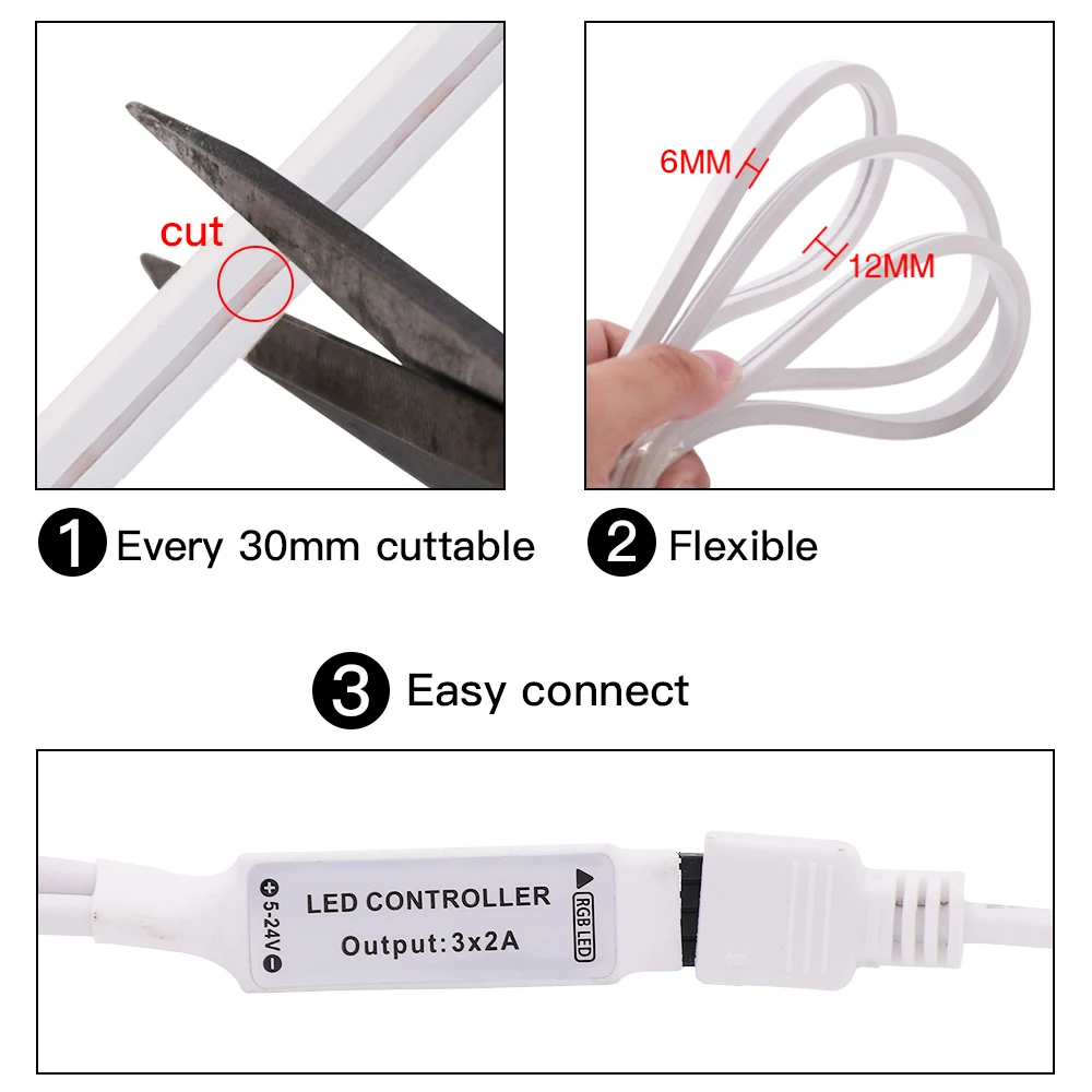 12 В WIFI RGB неоновая полоса приглушаемая Водонепроницаемая 6x2 мм красный синий розовый белый фиолетовый 2835 3535 гибкая лента светодиодная полоса