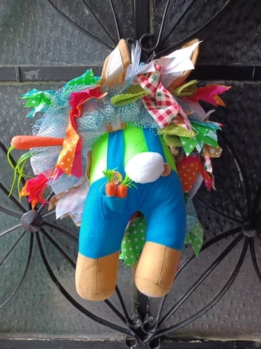Это ужасно, не заказывайте. Изображение в рекламе-это не то, что прибывает. Кролик там, но банты/украшение вокруг венка ужасно. Прямо в мусорное ведро!