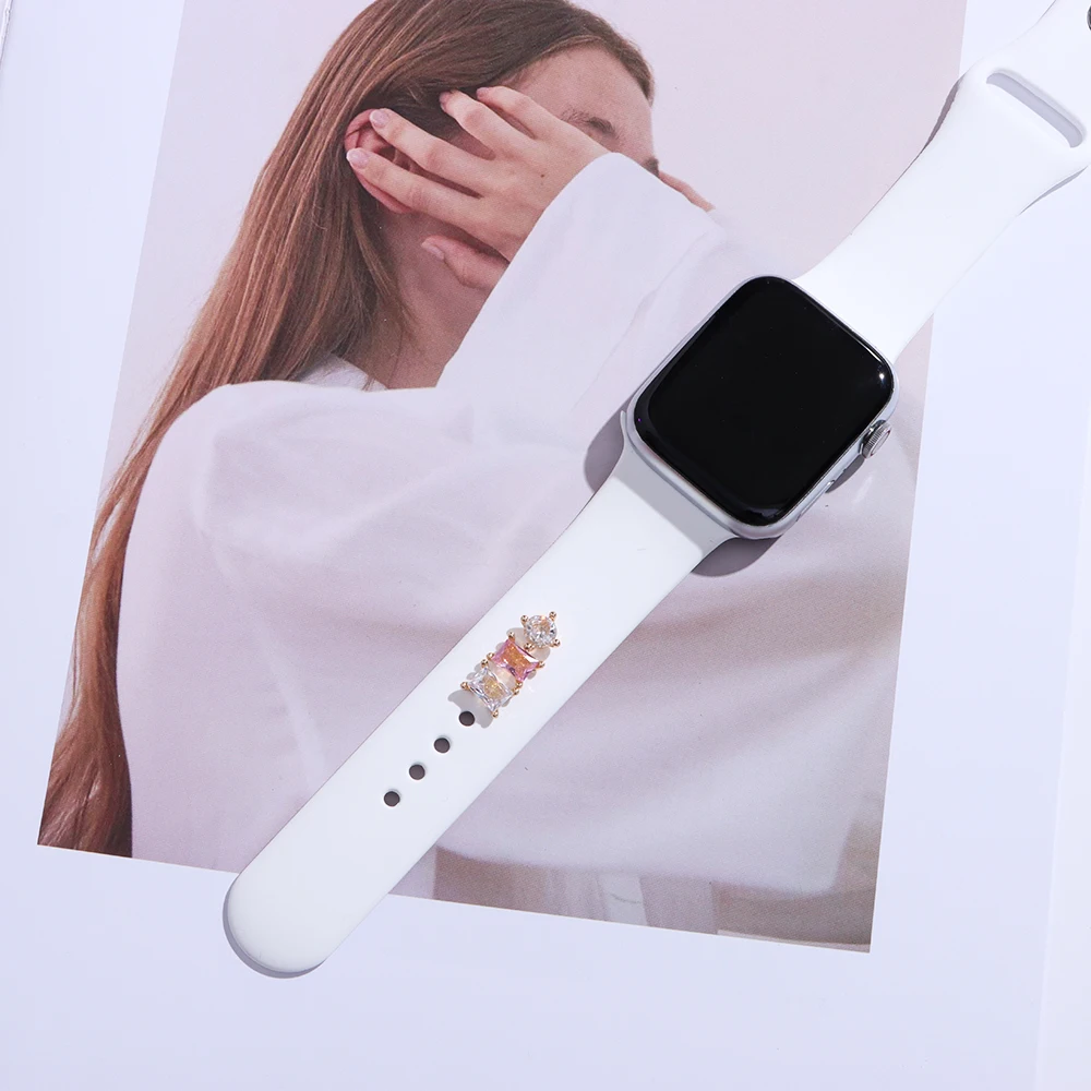 Квадратные декоративные Подвески Стразы для ремешка Apple Watch, силиконовый браслет, металлический декоративный браслет для iwatch, аксессуары для спортивных ремешков