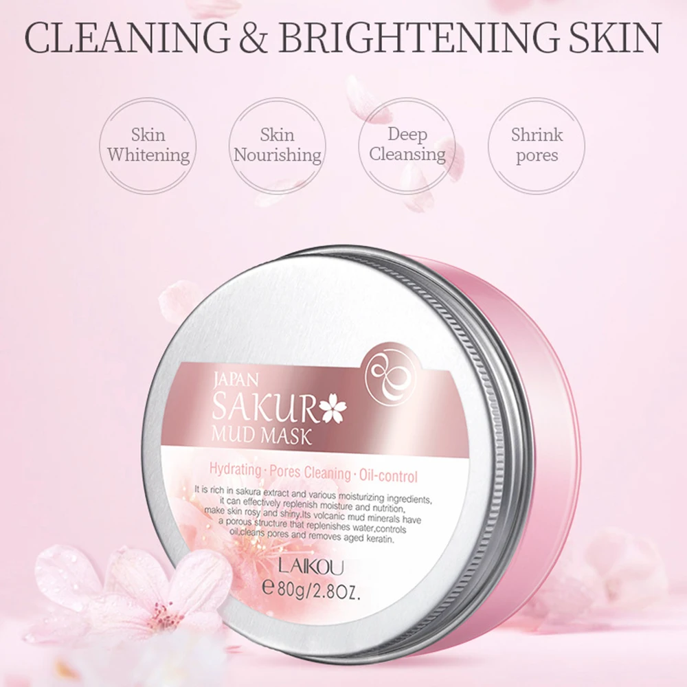 Грязевая маска Sakura Глубокая очистка отбеливание удаление черных точек Отшелушивание сужение пор контроль жирности восстановление пор уход за лицом 80 г