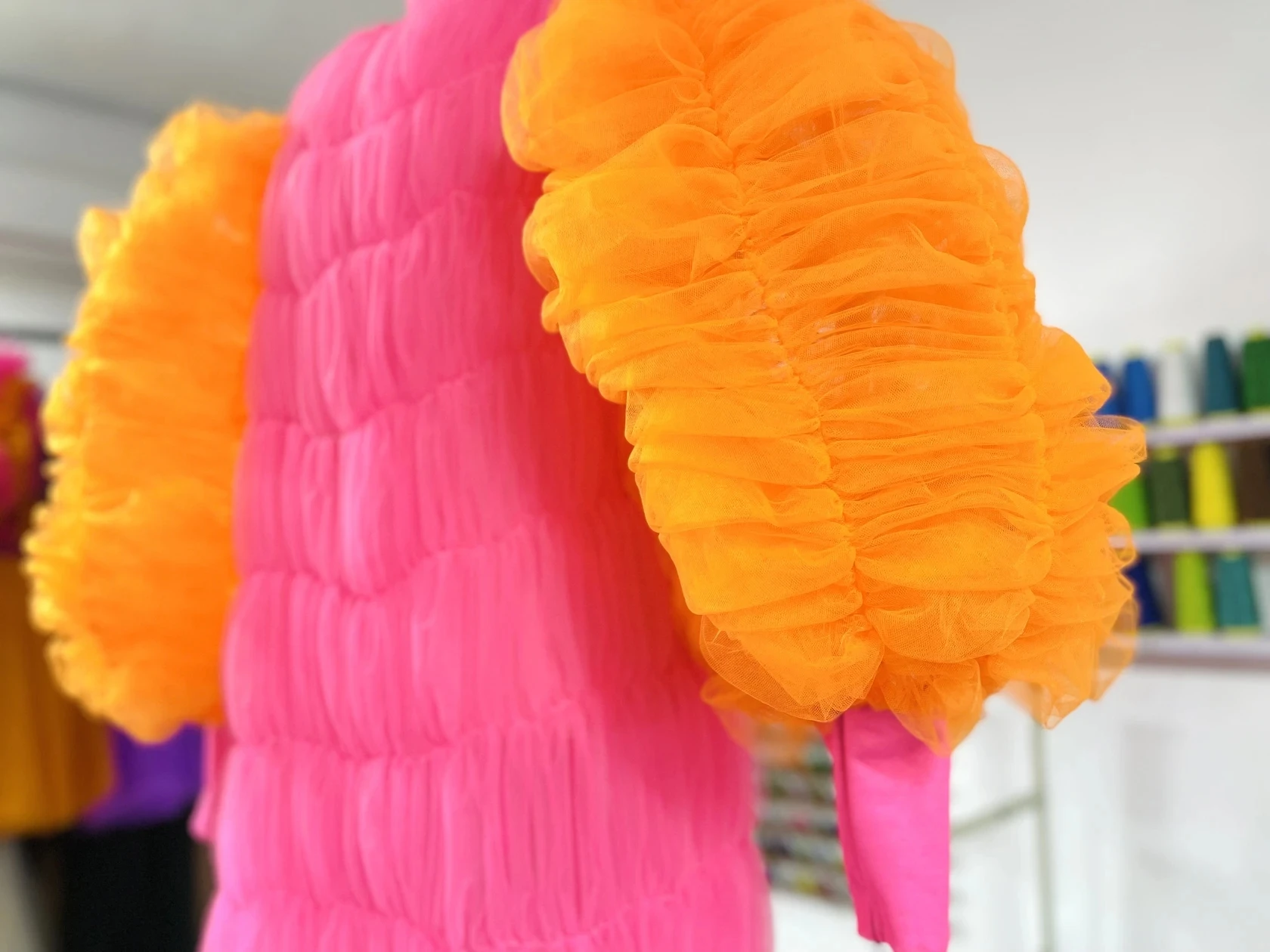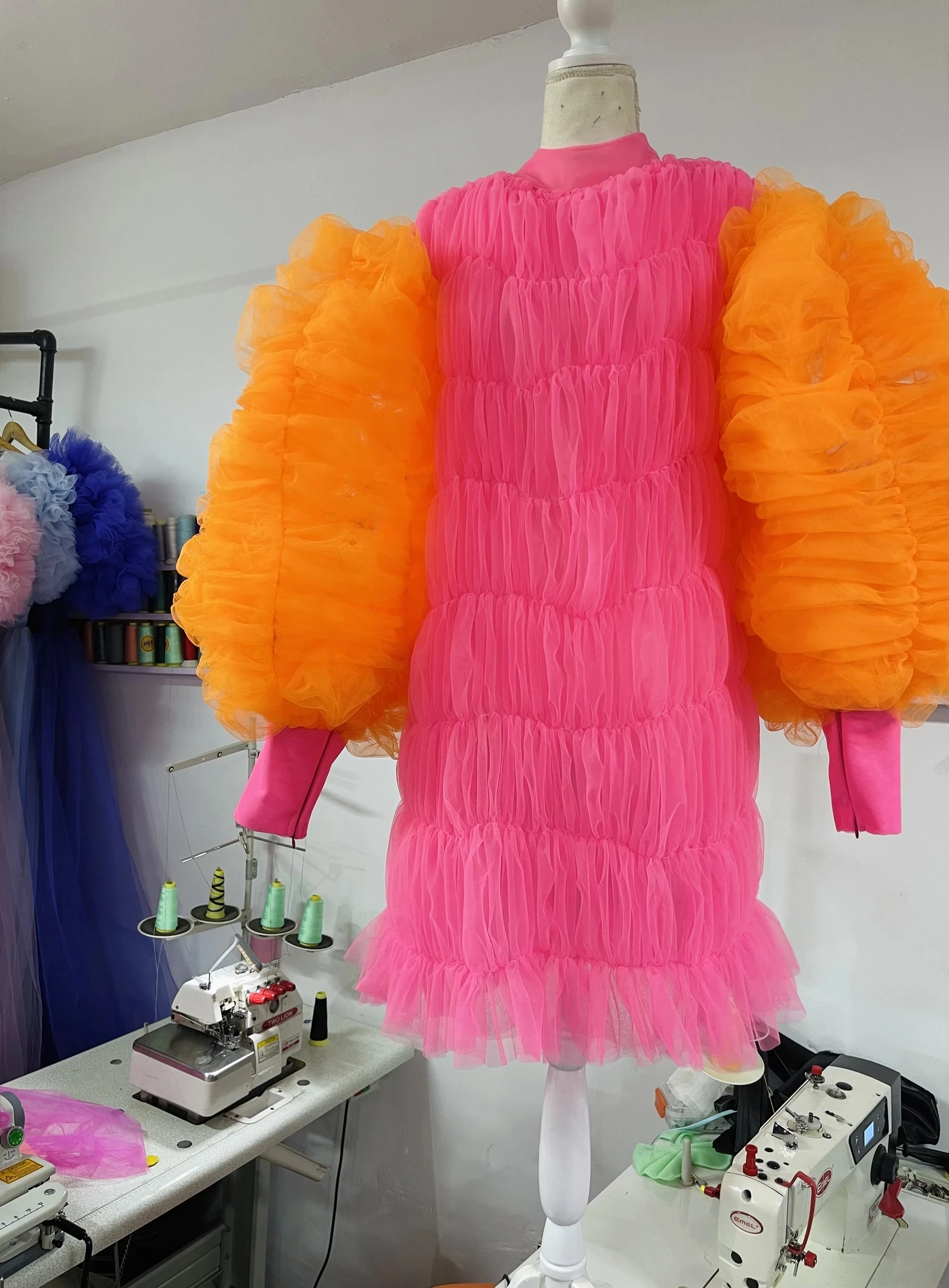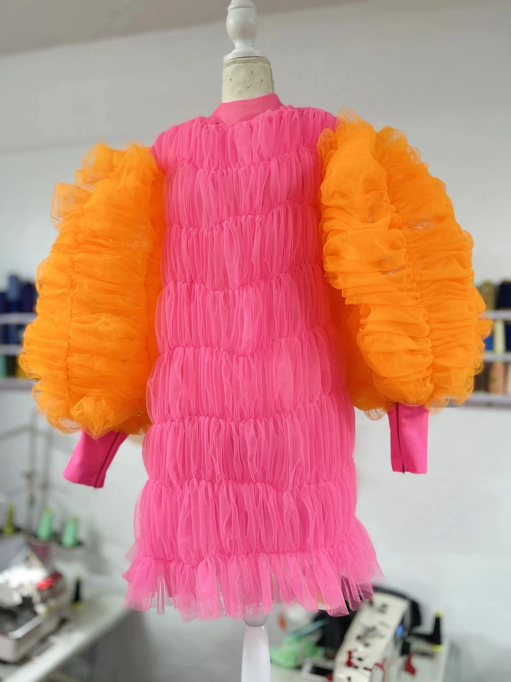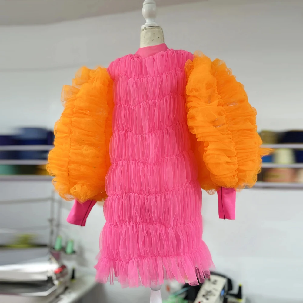 Новинка, Экстравагантное платье с рюшами в стиле High Street, модные короткие платья с рукавами-фонариками и высоким воротником, вечерние платья с реальным изображением