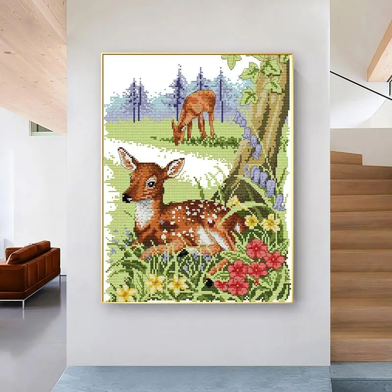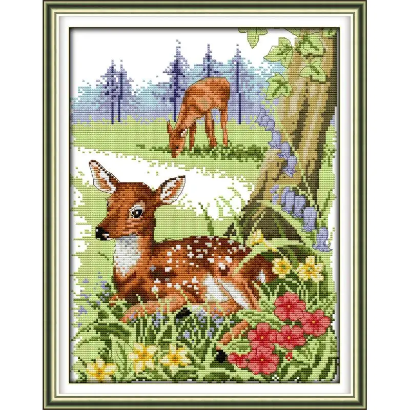 Вышитый олень с животным узором Joy Sunday Набор для вышивки крестиком поделки, ручная вышивка Aida 14ct 11ct Счетный холст ткань швейный набор домашний декор