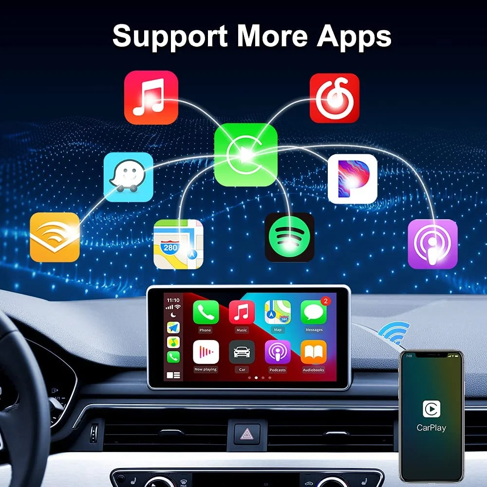 ▶Проводной Apple CarPlay для беспроводной связи▶Проводное соединение поддерживает зарядку iPhone▶Поддержка Siri▶Поддержка онлайн-обновления▶Функция: видеозвонки, голосовое управление, онлайн карта, воспроизведение музыки, просмотр видео/фильмов...▶Поддержка приложения: Поддержка всего программного обеспечения от iPhone поиск "Carplay" в Apple Store