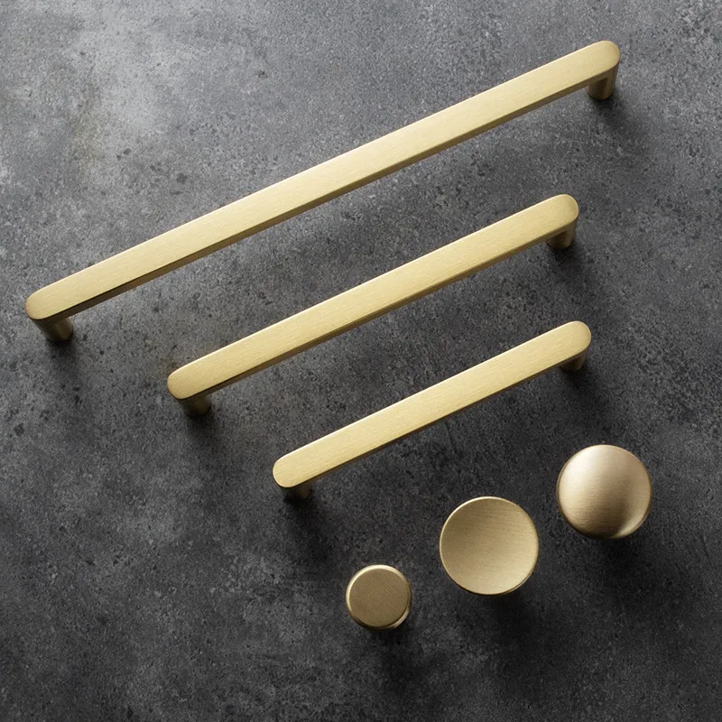 Современные золотые ручки из чистой меди, ручки для кухонного шкафа, дверь шкафа, зеркальная латунь