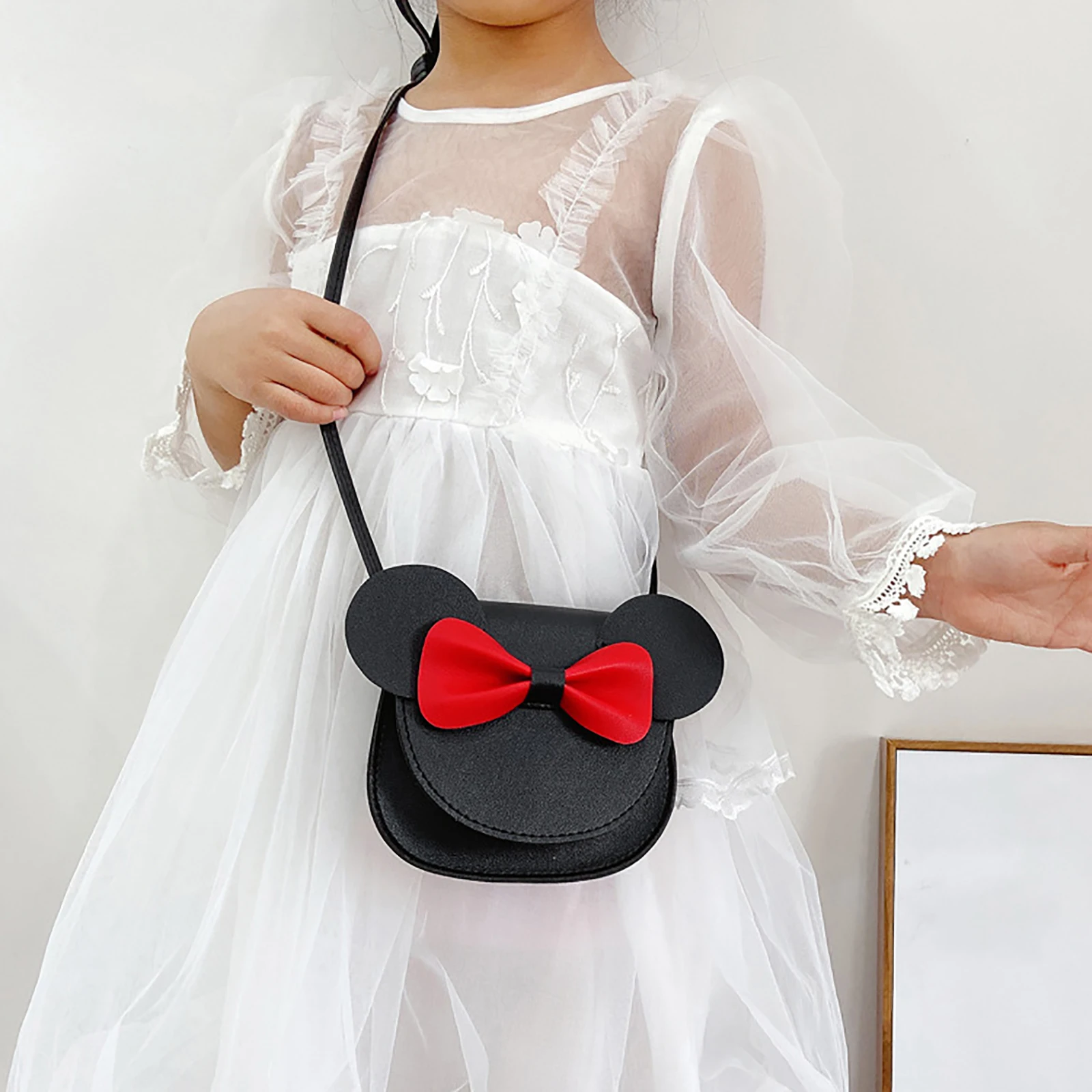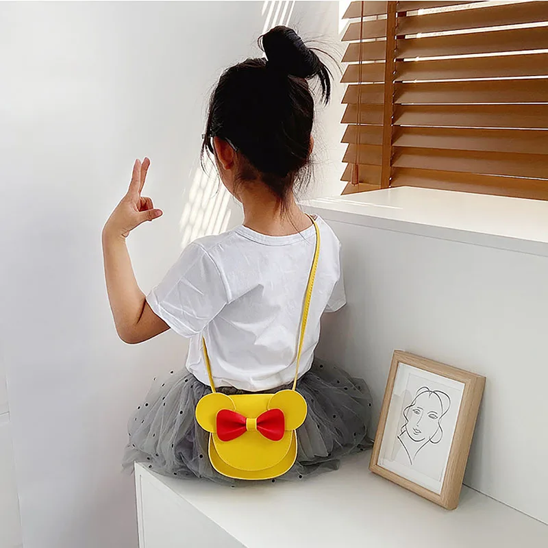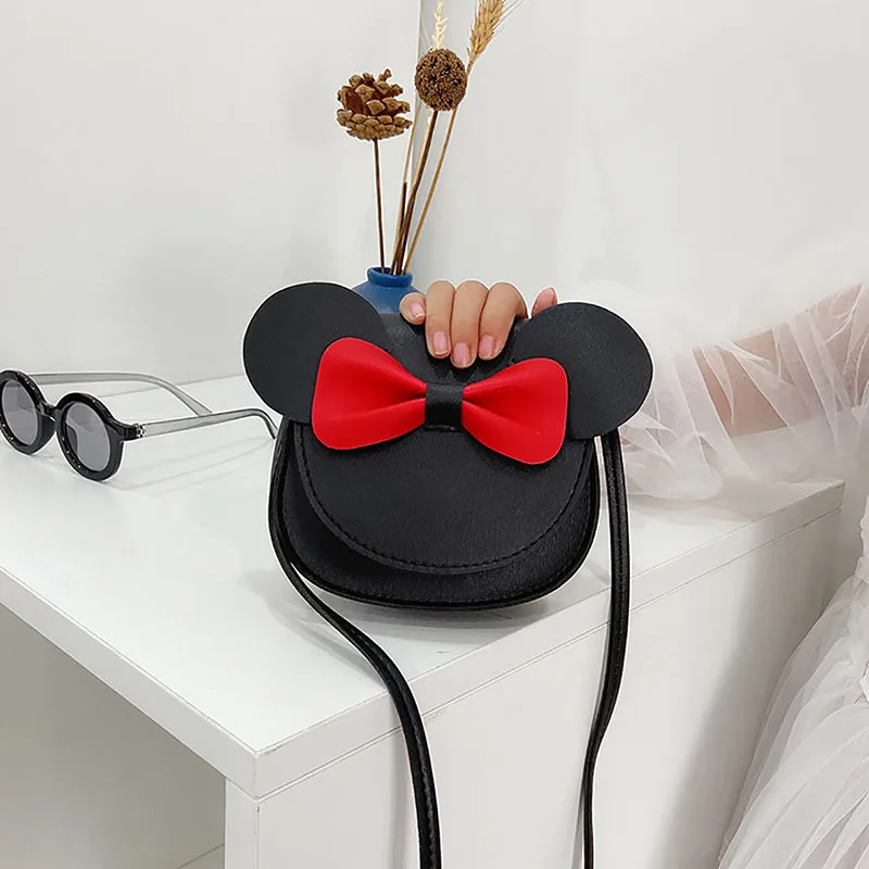 Модная детская сумка через плечо из искусственной кожи, милая мультяшная сумка через плечо для девочек с бантом в виде мыши, ушей и магнитной застежкой, детская одежда