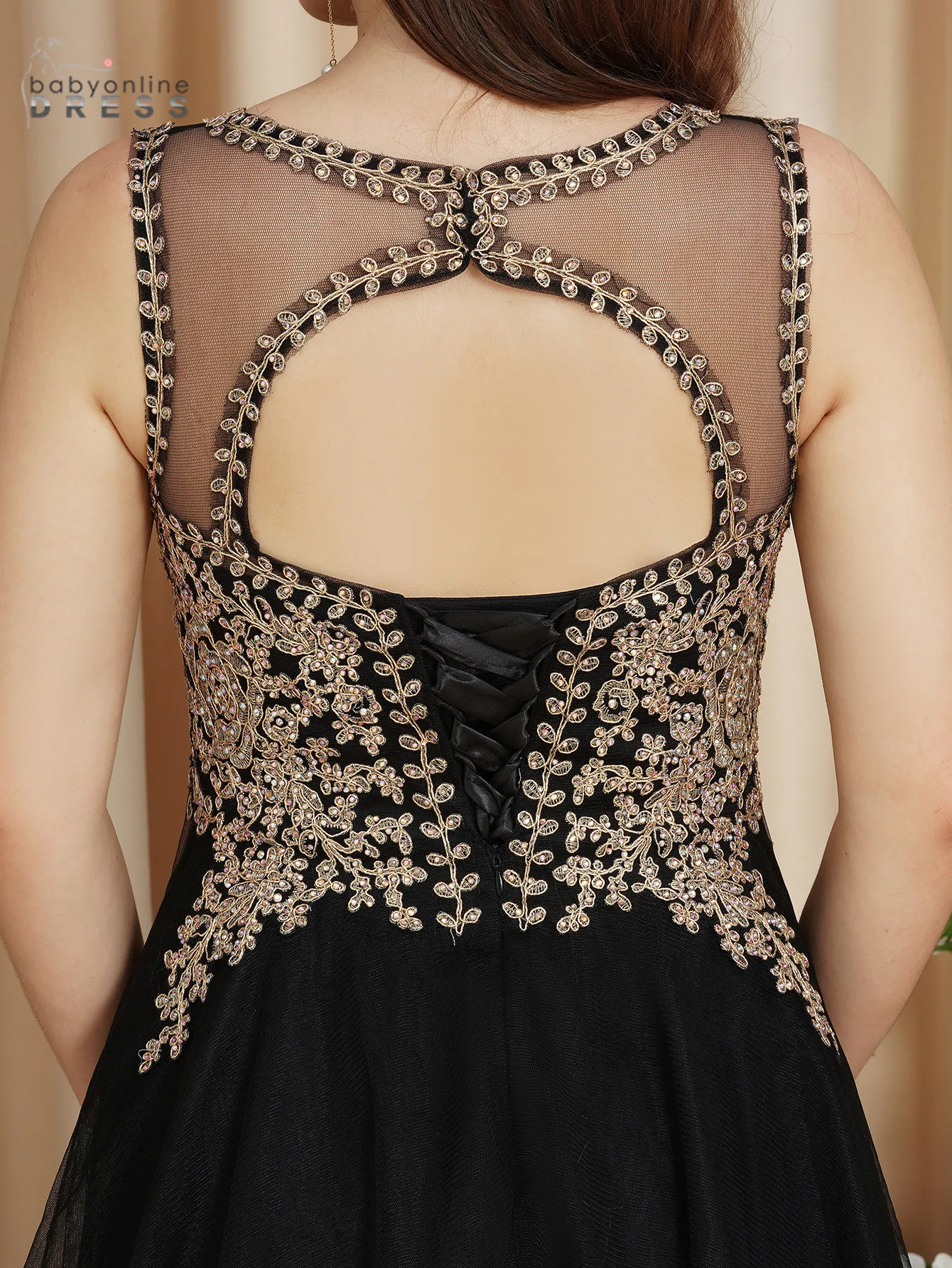 Короткое платье для встречи выпускников, ТРАПЕЦИЕВИДНОЕ Тюлевое платье с аппликацией, открытой спиной, выпускного вечера, выпускного вечера