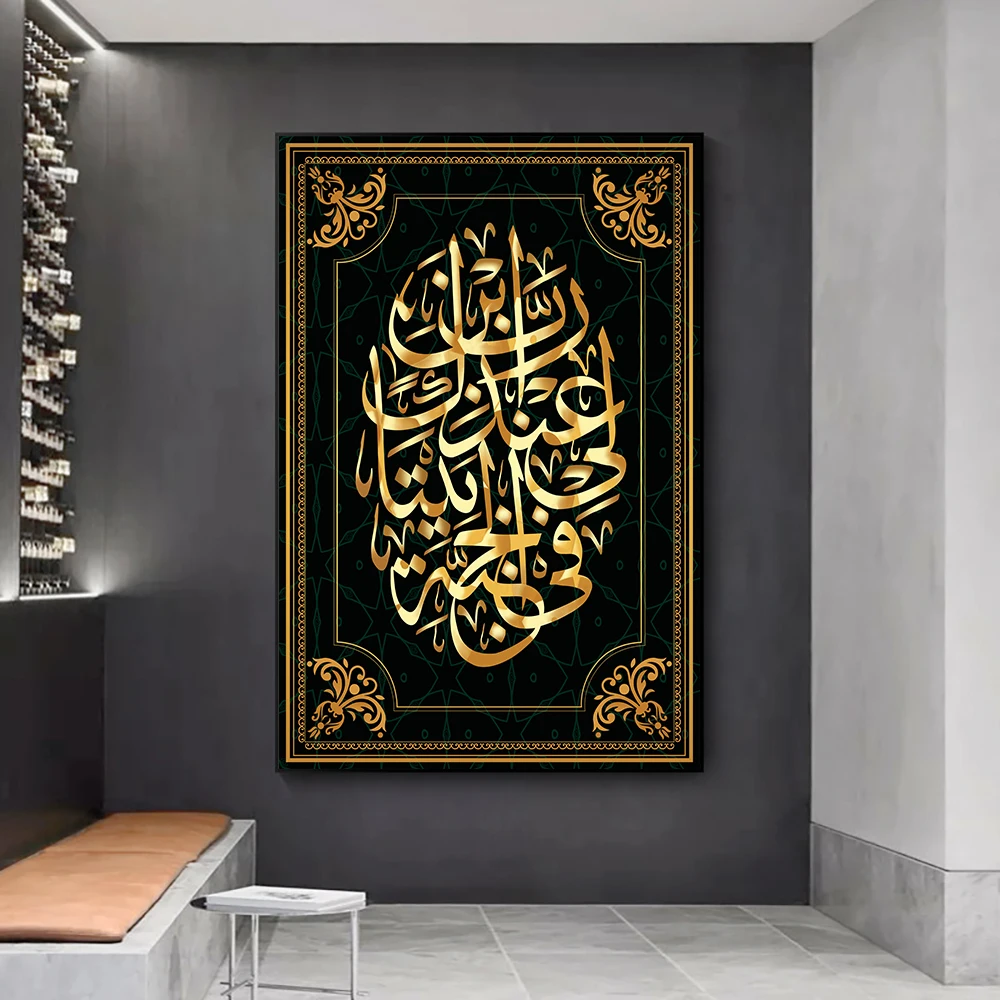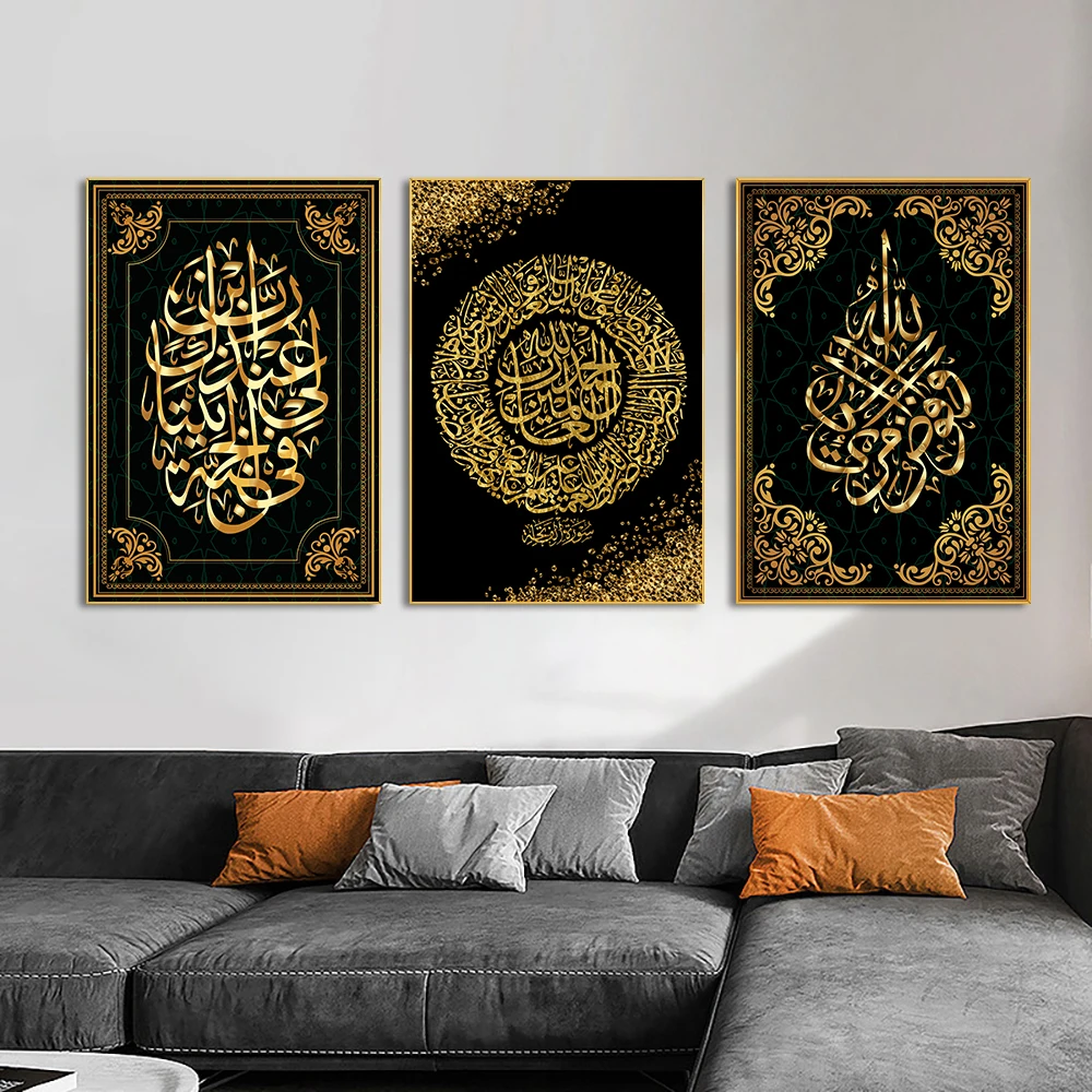 Абстрактный исламский Золотой холст с каллиграфией живопись Современные плакаты и принты настенные художественные картины для гостиной домашний декор
