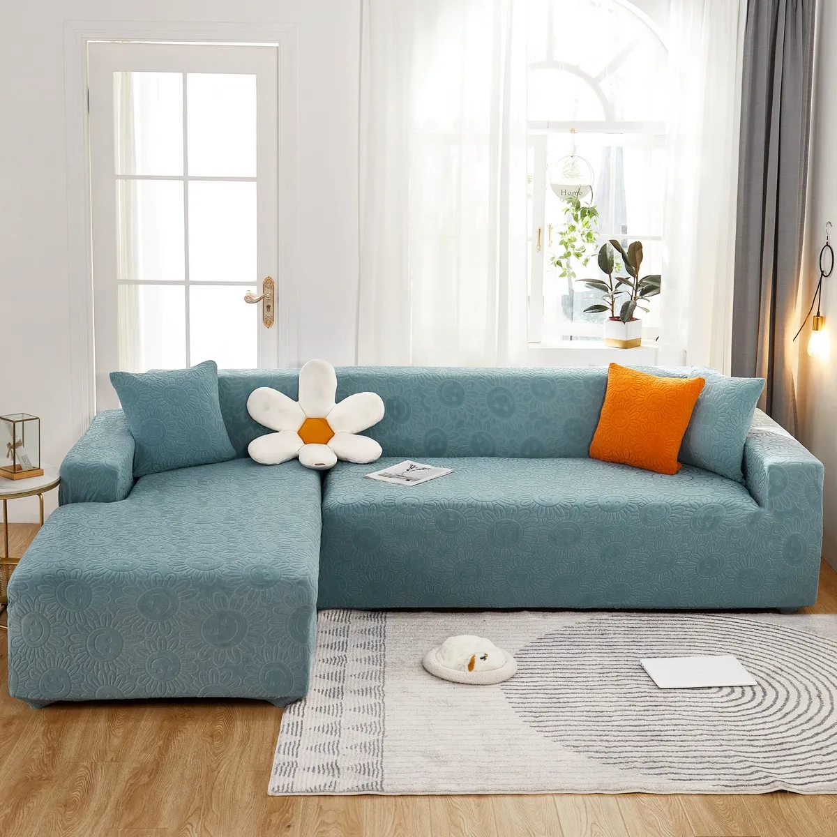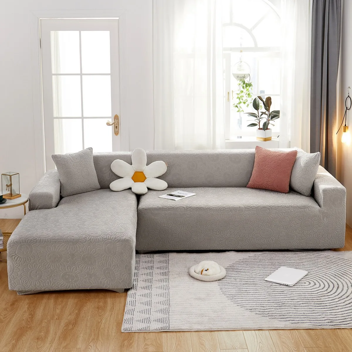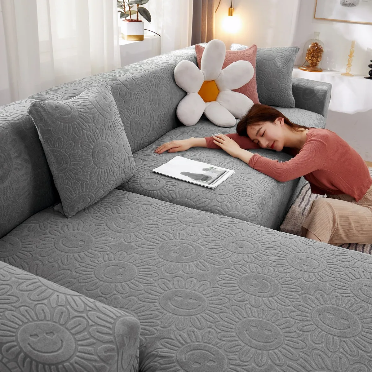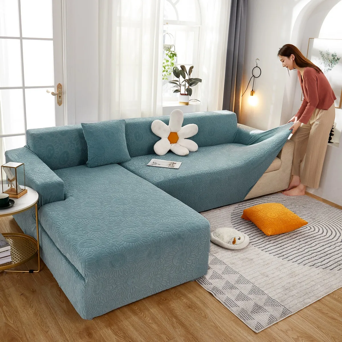 Эластичный чехол для дивана в гостиную, плотный жаккардовый флисовый чехол для кресла L-образной формы, защитный чехол для угловой кушетки