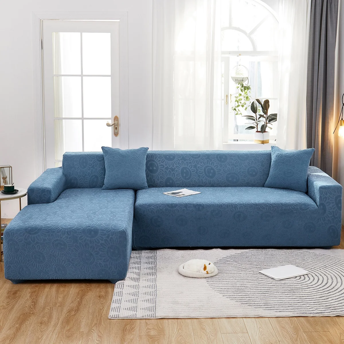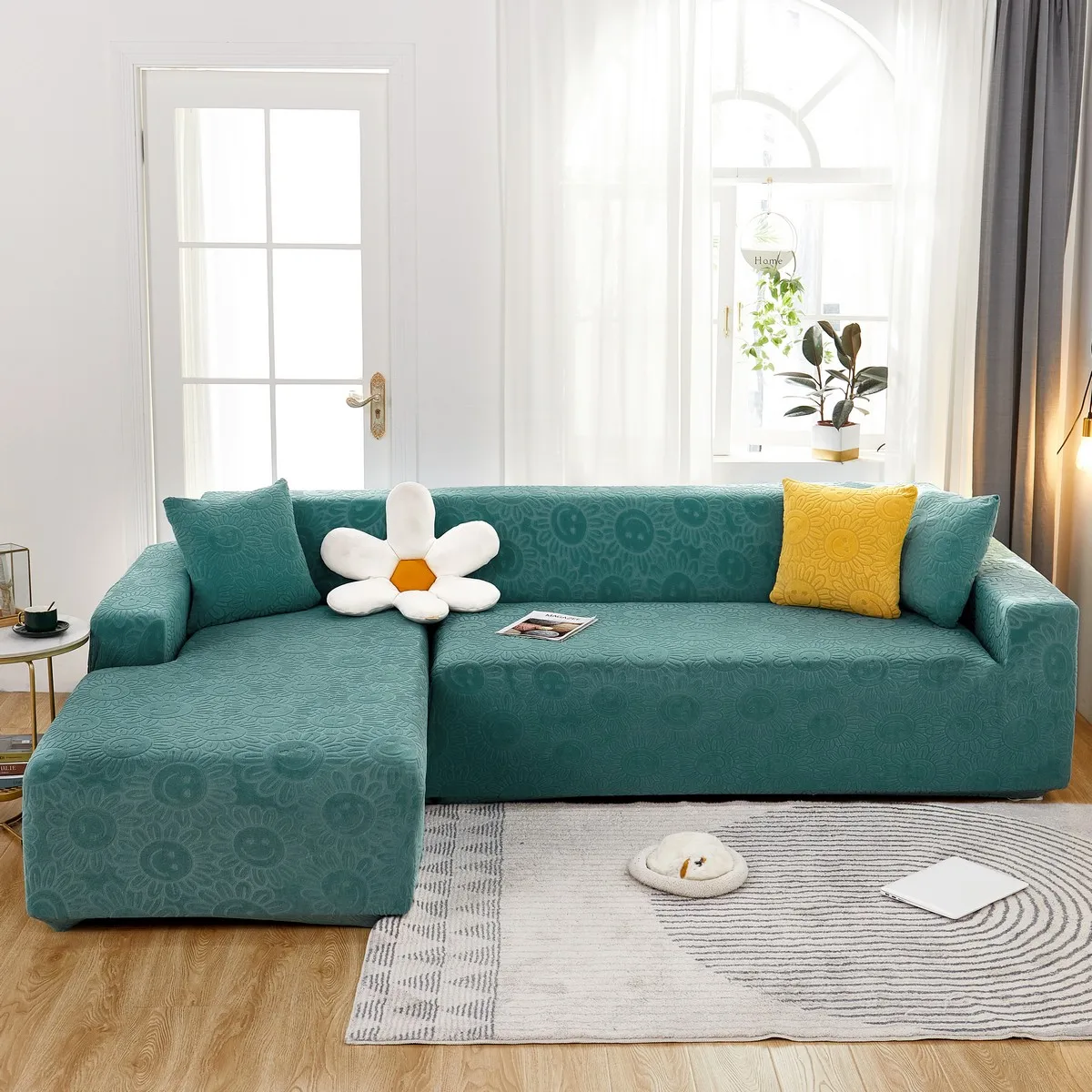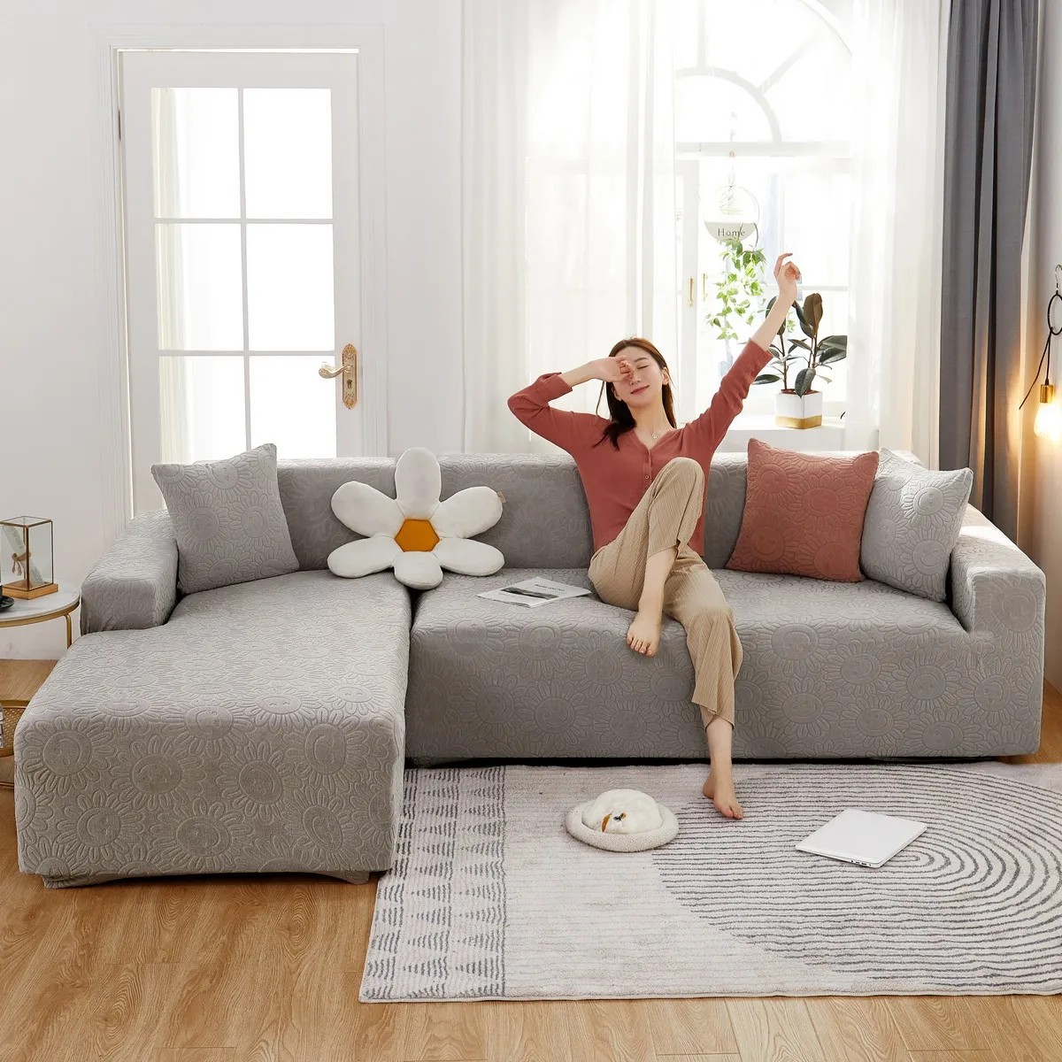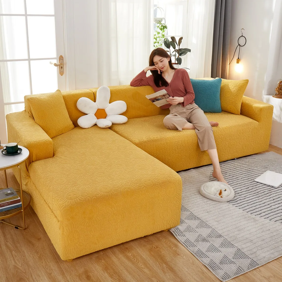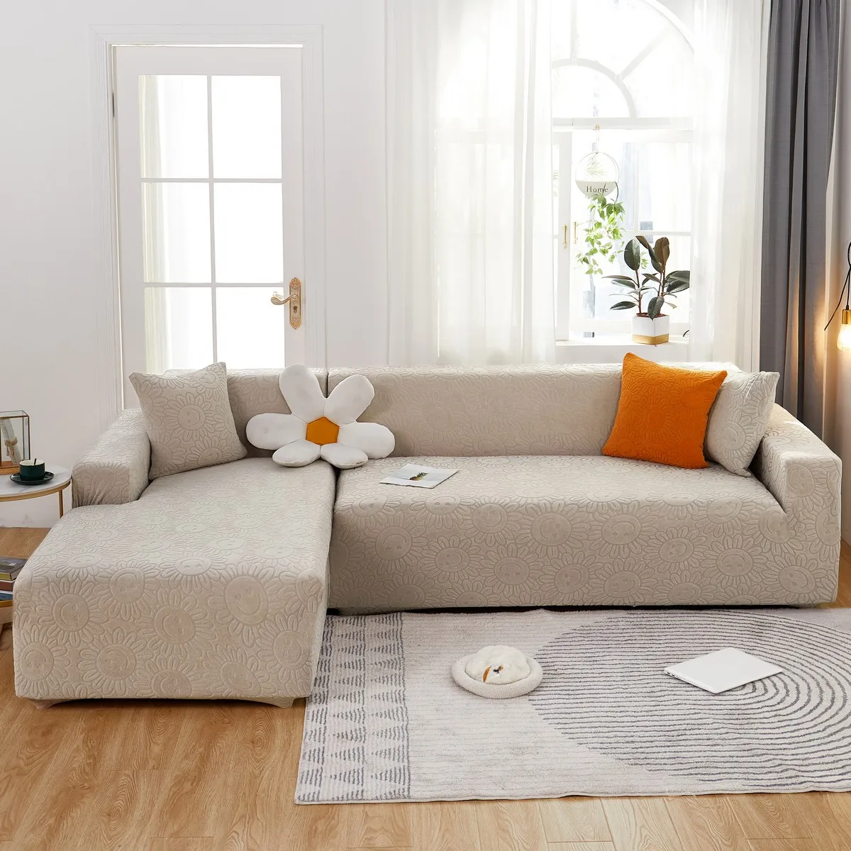 Эластичный чехол для дивана в гостиную, плотный жаккардовый флисовый чехол для кресла L-образной формы, защитный чехол для угловой кушетки