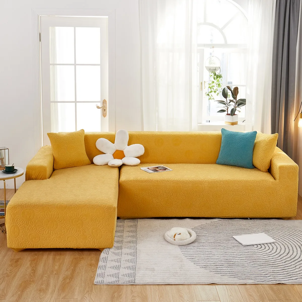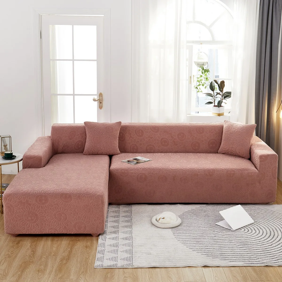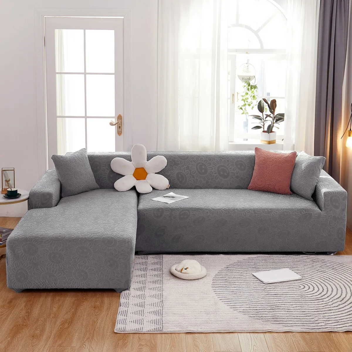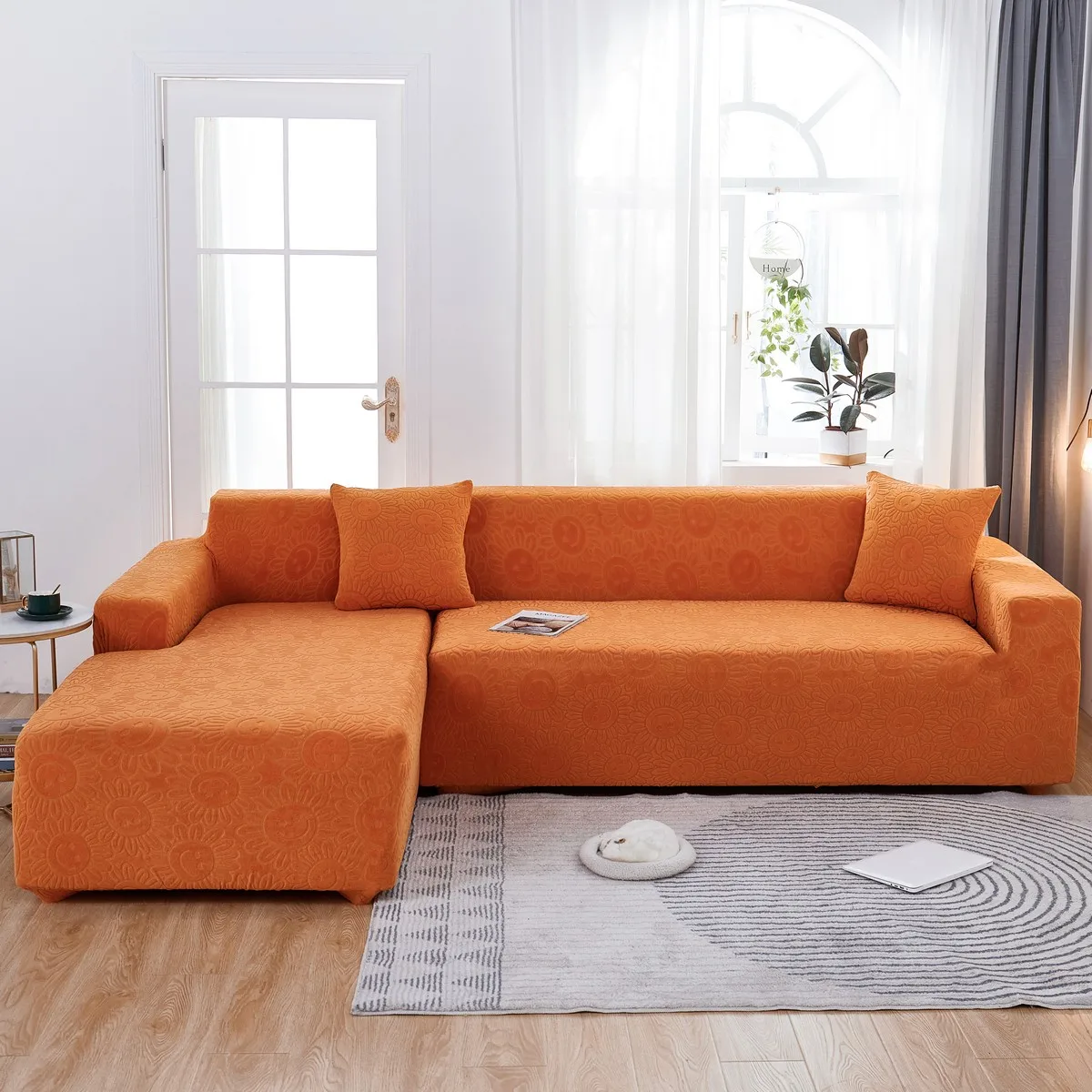 Эластичный чехол для дивана в гостиную, плотный жаккардовый флисовый чехол для кресла L-образной формы, защитный чехол для угловой кушетки