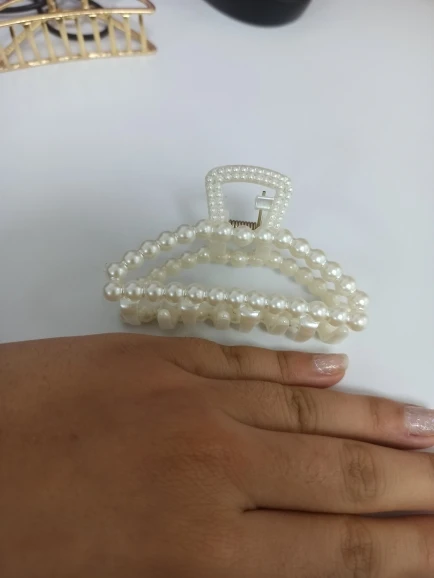 Материал крючка божественный, это пластик с двойным сцеплением жемчуга, правда в том, что они очень хорошо склеены, так что нет проблем, потому что ни один из них не отрывается, это почти размер руки, и самое лучшее, что он очень мягкий с волосами и сцеплением, я очень рекомендую его