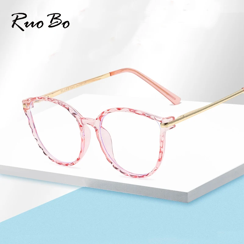Модные дизайнерские компьютерные очки RUOBO кошачий глаз с защитой от сисветильник для мужчин и женщин, металлические оптические очки TR90