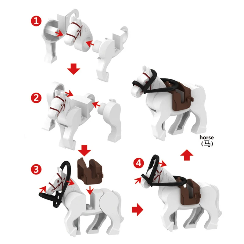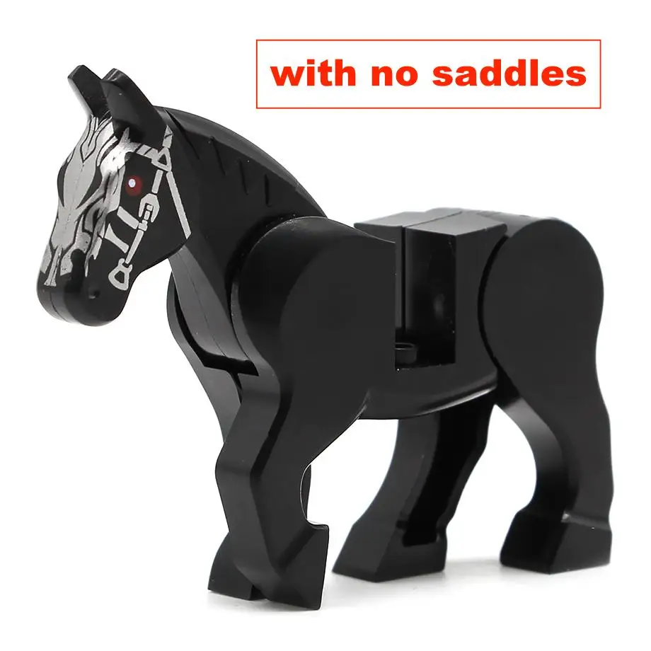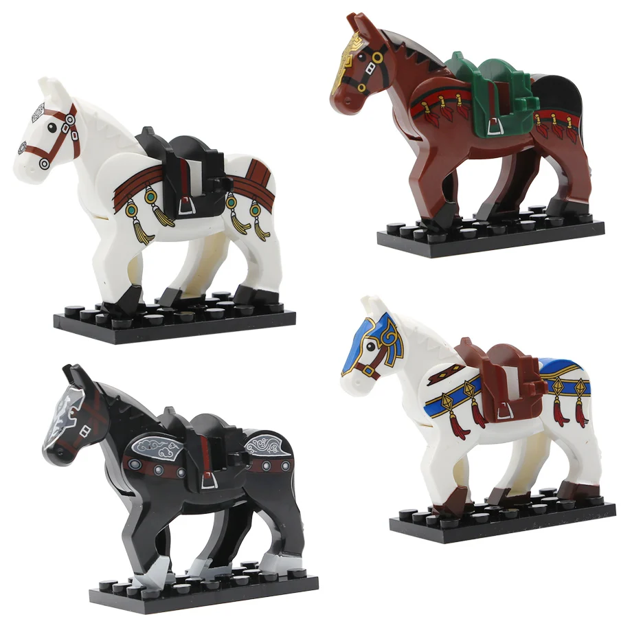 Одиночная римская война фигурка лошади MOC, военные Рыцари среднего возраста, лошади с сиденьями, строительные блоки, модель сделай сам, игрушки для детей