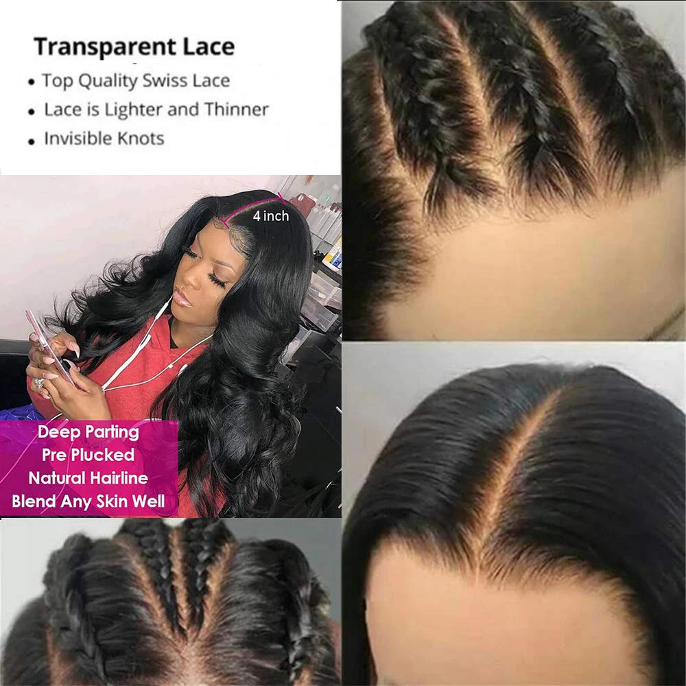 13x4 Прозрачная Кружевная Фронтальная 4x4 кружевная застежка Remy ч...
