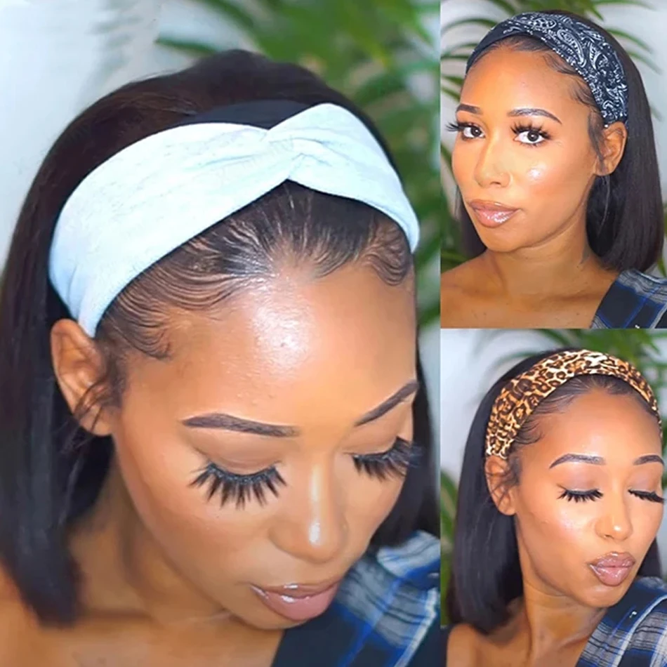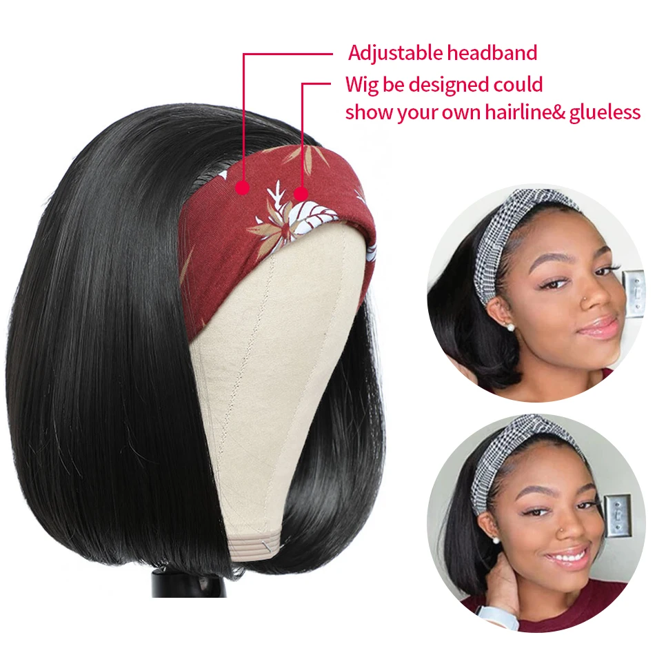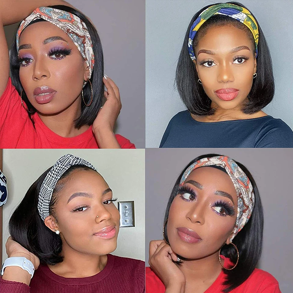 Парики Короткий Боб из парик с головной повязкой натуральных волос ...