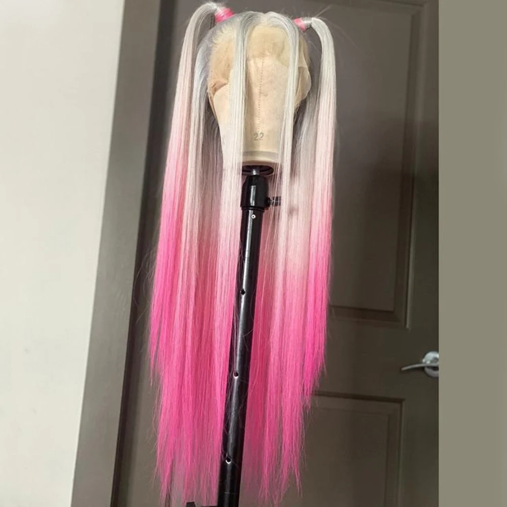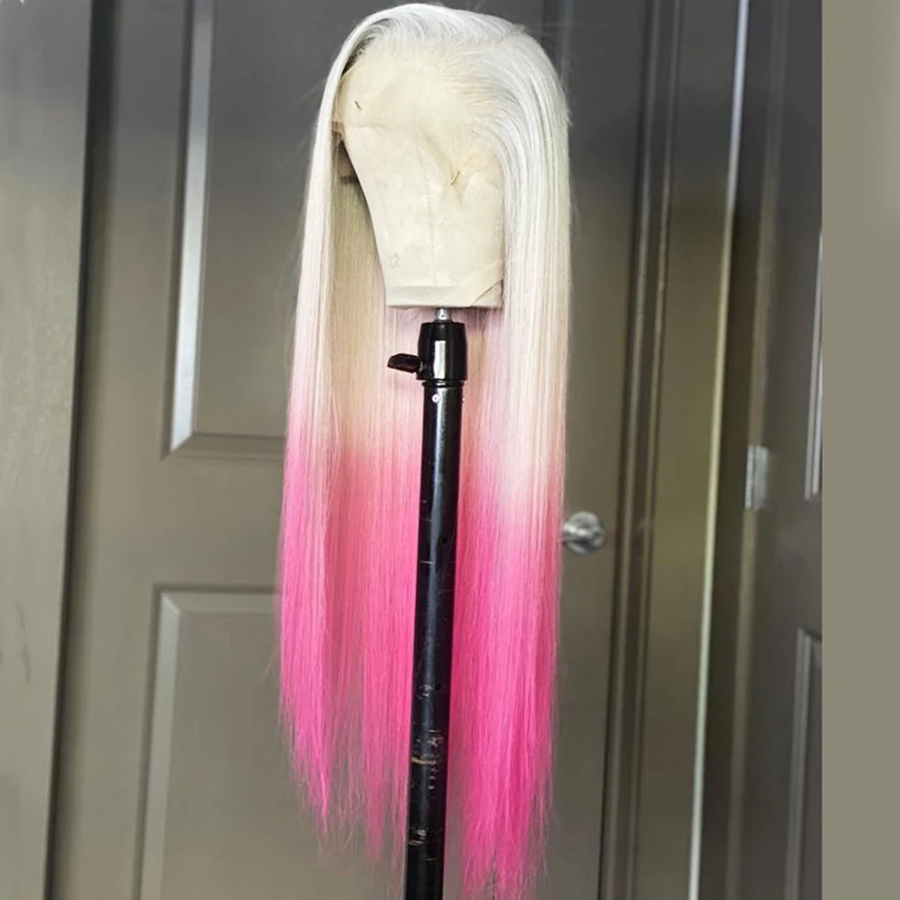 Парик харизма с прямыми кружевами спереди парики от блонд до розового Омбре для парика термостойкие волоконные натуральные зеркальные Косплей