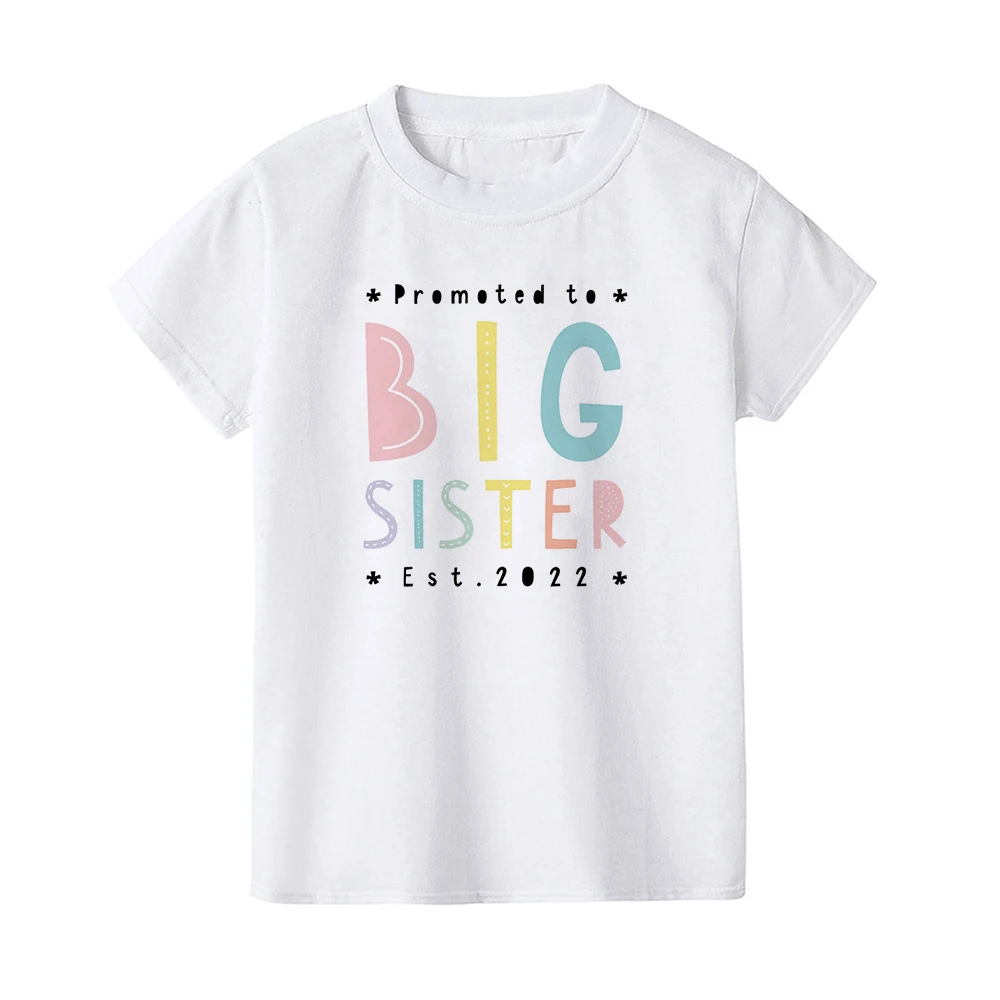 Коллекция 2022 года, футболка с короткими рукавами для девочек с надписью Big Sister Est Детская футболка с графикой, модная повседневная Летняя одежда лучший подарок на Новый год