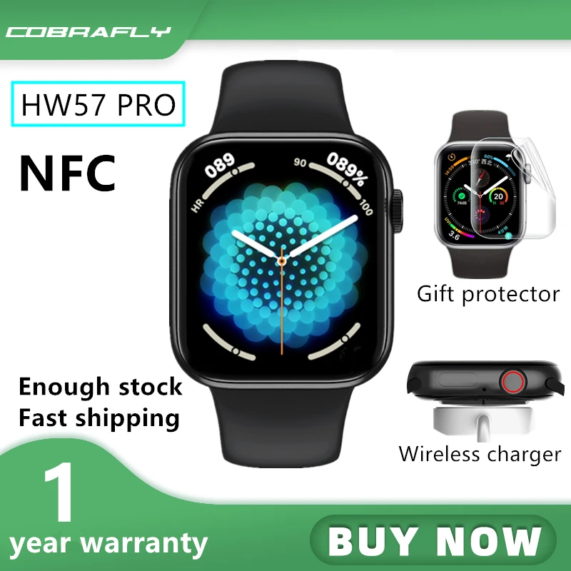 Смарт-часы Cobrafly мужские с беспроводным зарядным устройством, IP68, iwo HW57 Pro
