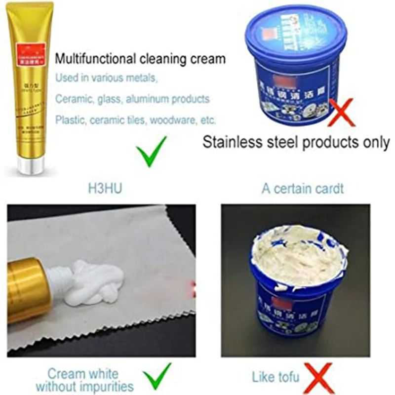 Особенности:1. Быстро: мгновенно удалите тускнение, ржавчину, окисление с металлических поверхностей с помощью этого металлического полировочного крема.2. Длительный блеск: после удаления всех дефектов, он оставляет глубокий блестящий блеск с длительным, защитным и тускнеющим покрытием. Обеспечивает блестящее, долговечное защитное покрытие.3. Неабразивный и не поврежденный: с его неабразивной особенностью, он полностью безопасен и не поврежден для любых металлических изделий.4. Многофункциональность: благодаря высокоэффективной формуле, крем предлагает все-в-одном решения для очистки, блеска и защиты вашего металла.5. Широко используется: широко применяется для меди, латуни, стерлингового серебра, алюминия, нержавеющей стали или даже золота.