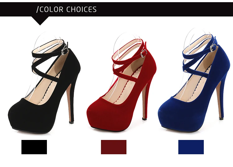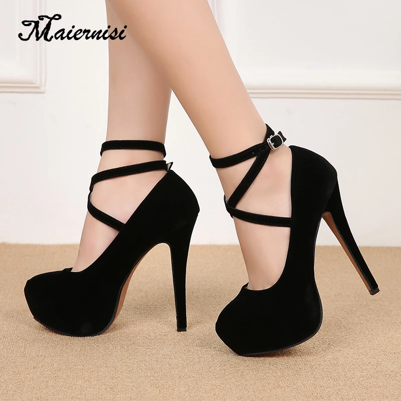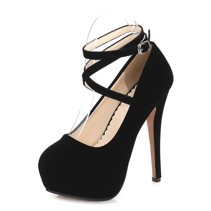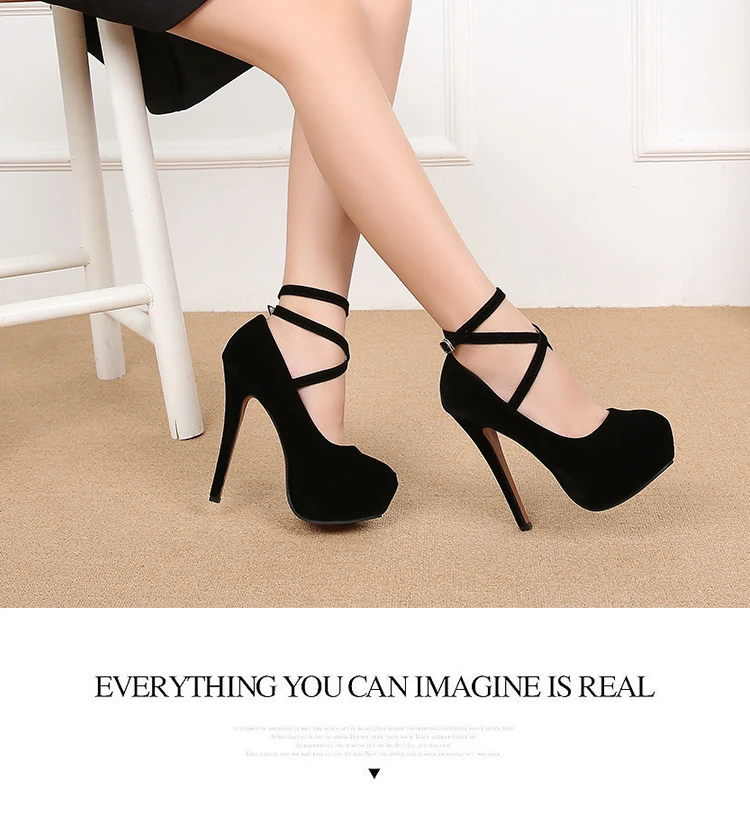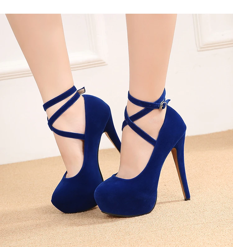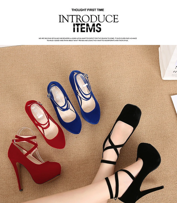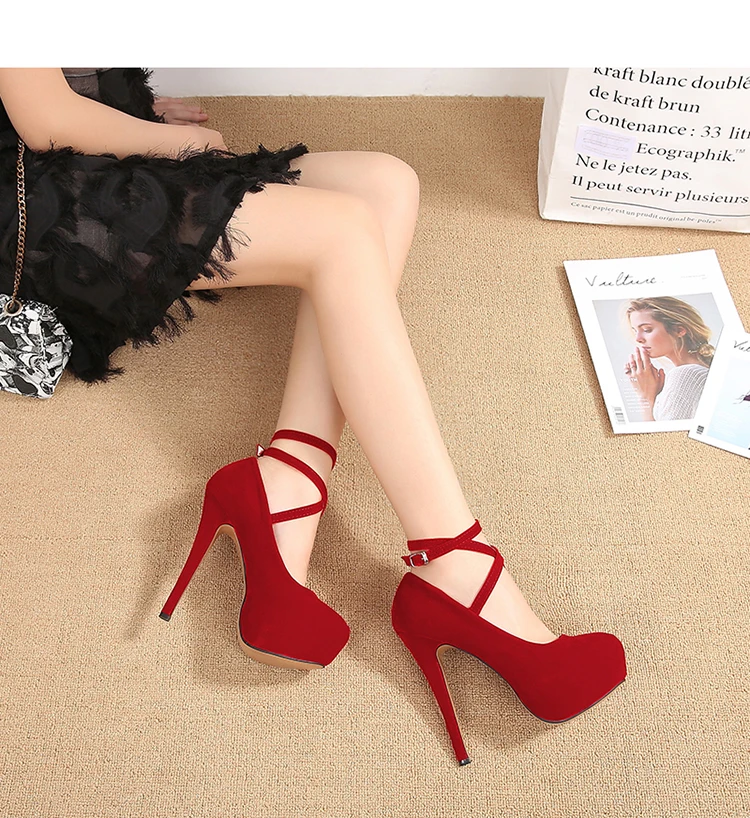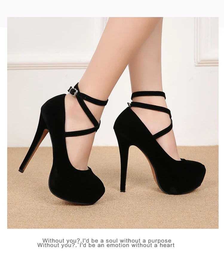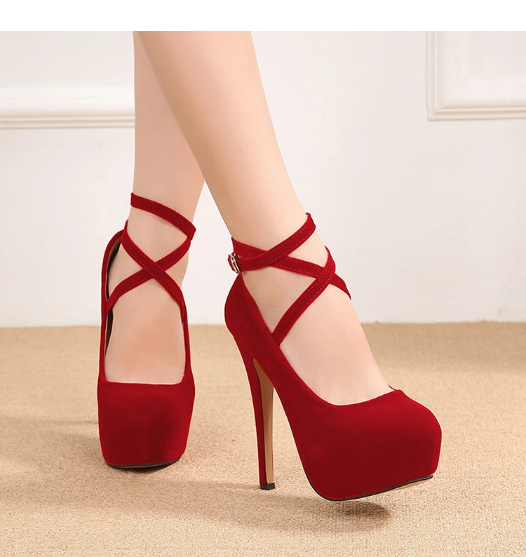 Туфли-лодочки женские на высоком каблуке, стильная модная из флока, с перекрестными ремешками, на высоком каблуке 14 см, платформе 4 см, пикантная модель для ночного клуба, приблизительно 35-46