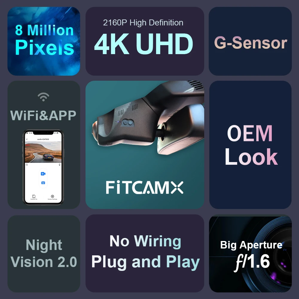 Видеорегистратор 4K для Jaguar E Pace,Jaguar F Pace, Автомобильный видеорегистратор для Land Rover Range Rover Velar,Discovery Sport,FITCAMX автомобильная камера