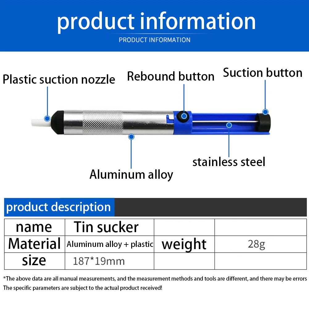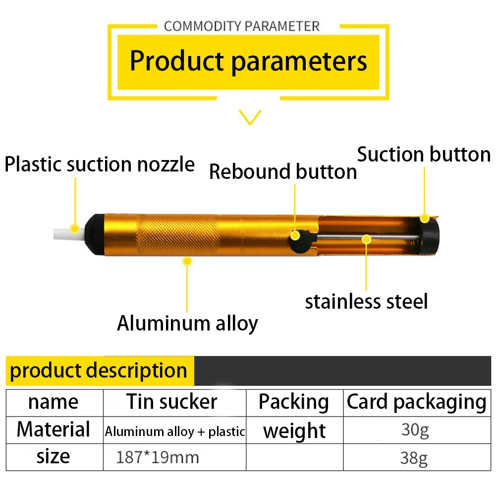 Алюминиевый металлический отсос для демонтажа олова, паяльная присоска, ручка, инструмент для вакуумного удаления, железная отсос, ручной сварочный инструмент