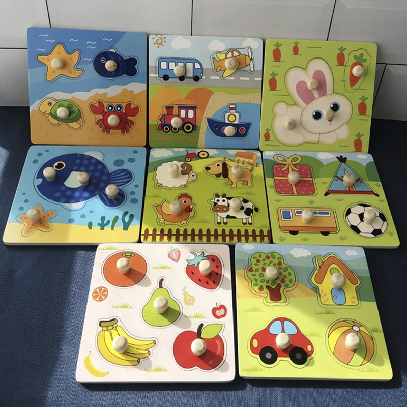 Детская Доска для захвата рук, 3D пазл, деревянные игрушки для детей, Мультяшные животные, деревянные пазлы для малышей, детские развивающие Игрушки для раннего обучения