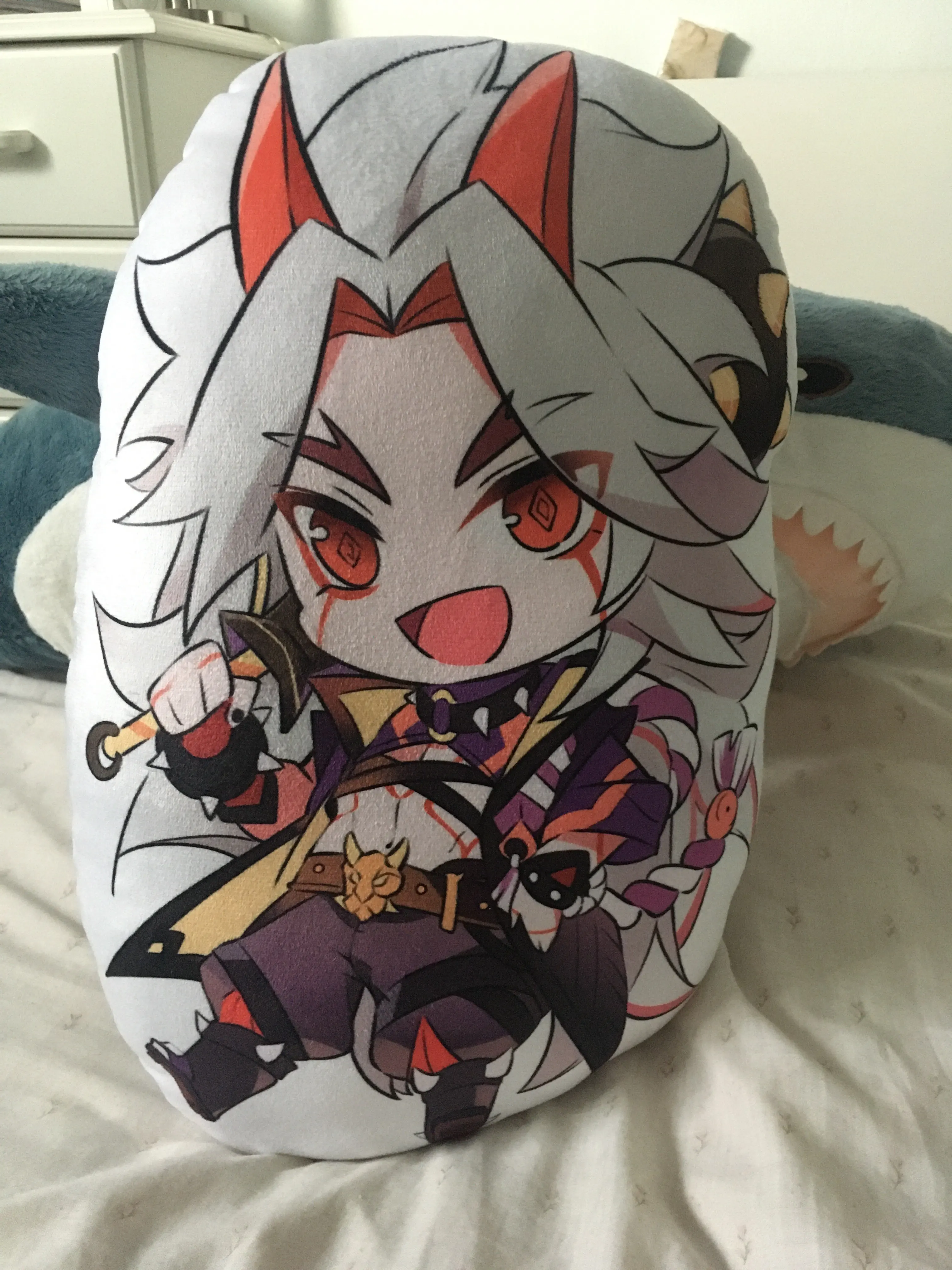 Я очень люблю его. Размер подушки * Идеально * для того, чтобы обнимать его самостоятельно, и качество печати очень впечатляющее? Принт острый, и цвета очень яркие, я действительно очень впечатлен качеством omg. Очень приятный на ощупь, мягкий и пушистый, но гладкий! Я так доволен своим муженем янкии они, я не могу быть счастливее <3 я думаю, что теперь я тоже могу получить Гоу, потому что качество просто так хорошее; _;