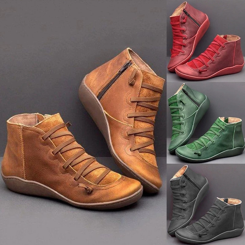 Женские ботильоны из искусственной кожи, женские Винтажные ботинки в стиле панк на плоской подошве, с перекрестными ремешками, Осень-зима