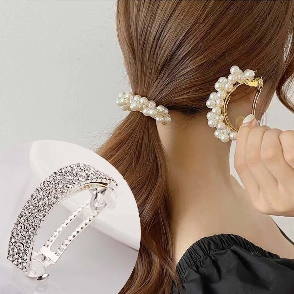 Женские заколки для волос Haimeikang, металлические стразы, заколки для волос с конским хвостом, аксессуары для волос с жемчугом