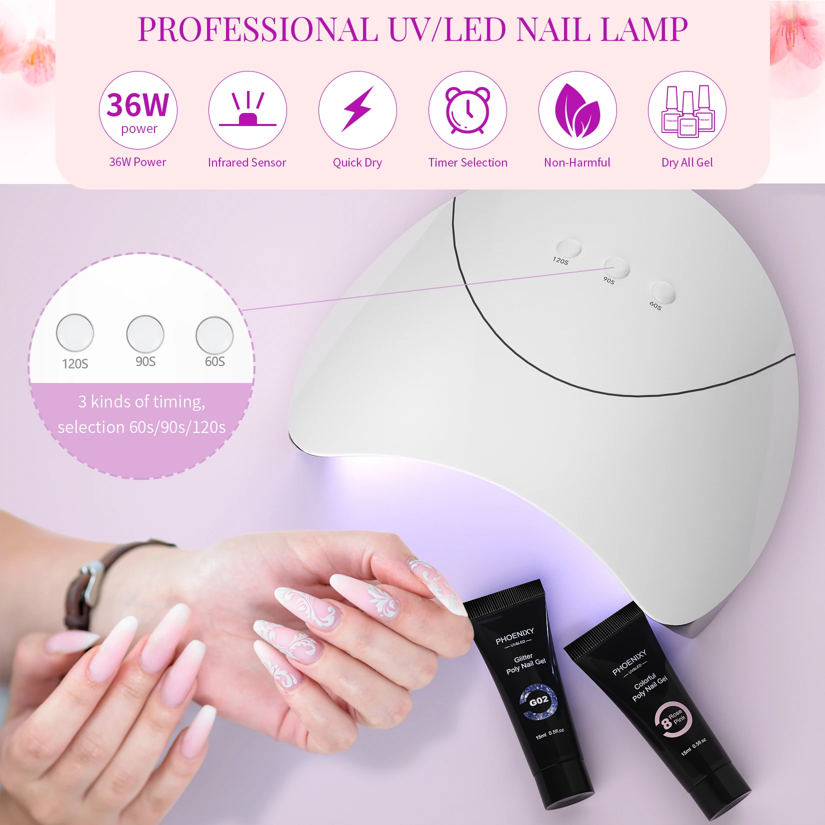 Набор для ногтей для начинающих, Гель-лак для ногтей 36 Вт, УФ-ламп...