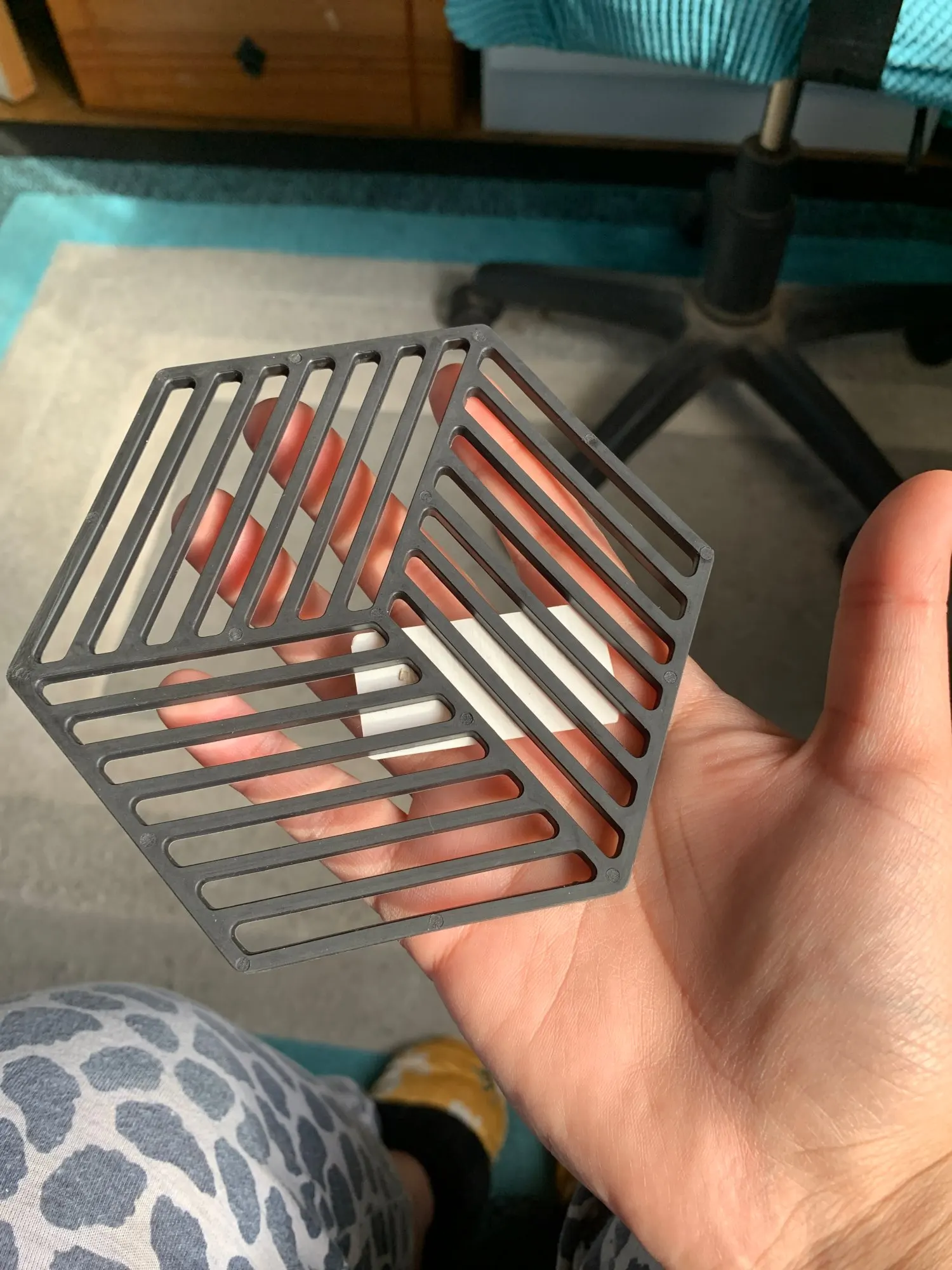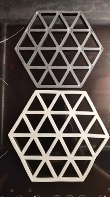 Подставка как на фото, хорошая, но горячее чашки чая или кофе ставить не стоит. от противня или сковородки плавится и теряет вид