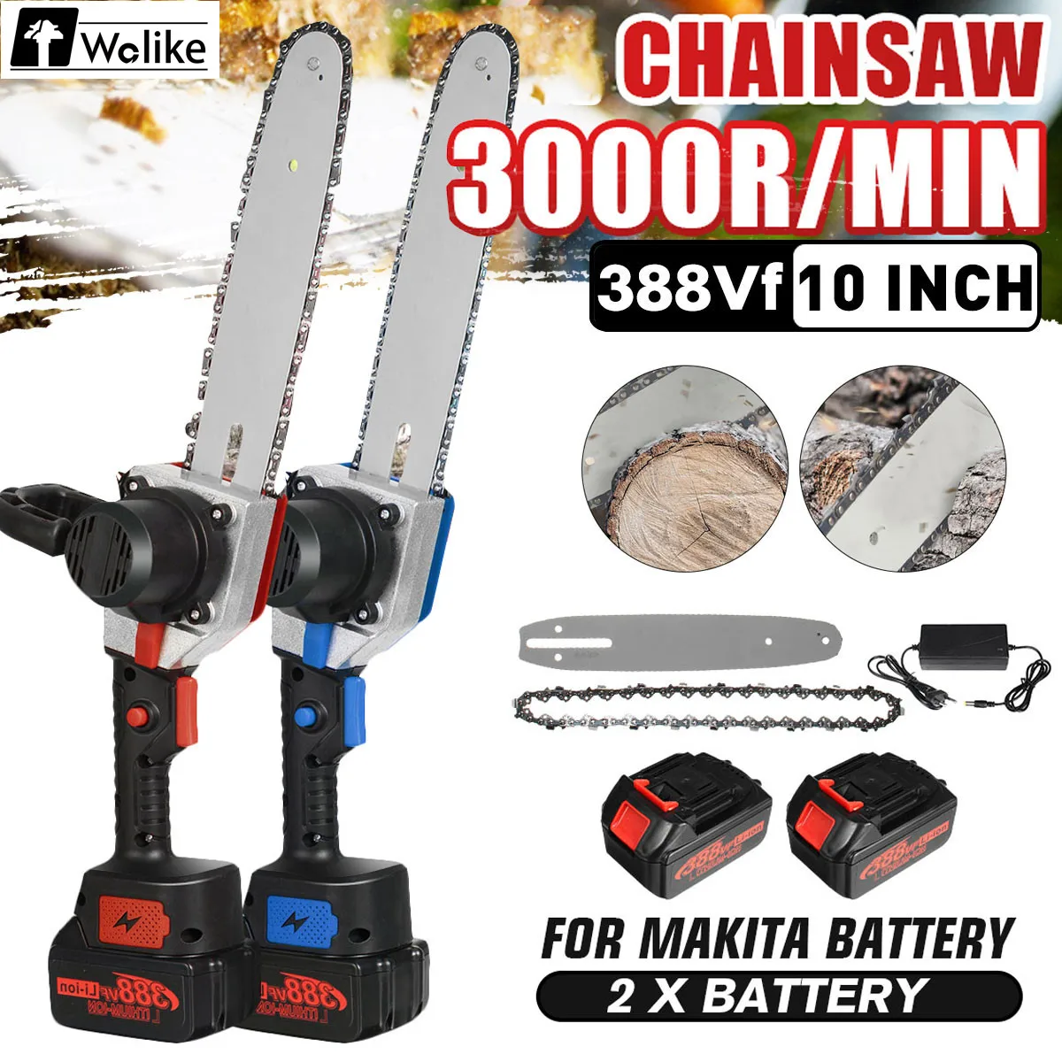 Электрическая цепная пила, 10 дюймов, 3000 Вт, беспроводная цепная пила для обрезки садовых деревьев, электроинструмент для деревообработки Makiita, батарея 18 в