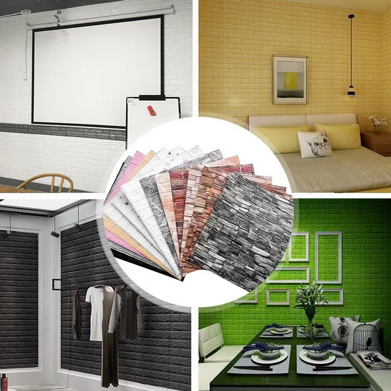 Описание:<Высокое качество: Изготовлен из высококачественного пенопласта XPE, защищает от столкновений детей, заботится о вашей семье. Водонепроницаемость, защита от влаги и звукоизоляция. Легкая чистка и обслуживание, нетоксичный, без запаха.<Самоклеящаяся конструкция: самоклеящаяся кожура и наклеиваемые обои, легкая паста и съемка.<Безопасно для вашей семьи: материал 3D кирпичной пены является безопасным, нет обнаружения вредных тяжелых металлов, высокое качество экологических стеновых декораций панелей.<Применение: Идеально подходит для стен, ТВ-стен, диванов, гостиной, спальни, кухни, детской комнаты, лестниц, столовой и так далее.<Идеальный декор: 3d-эффект и текстура, текстура 3D обоев сделана из мягкого пеноматериала XPE.<Простая установка:1. Тщательно очистите поверхность.2. Снимите клеевую пленку и приклейте обои к поверхности.3. Мягко гладьте обои, чтобы обеспечить их безопасность4. Разгладьте любые воздушные пузыри, когда вы двигаетесь вниз.
