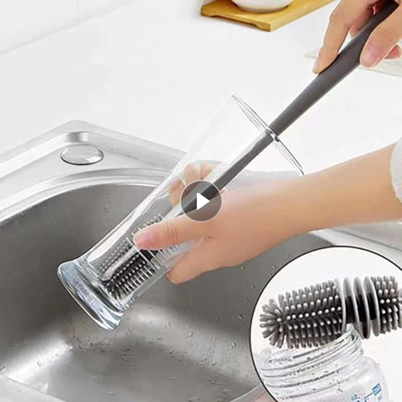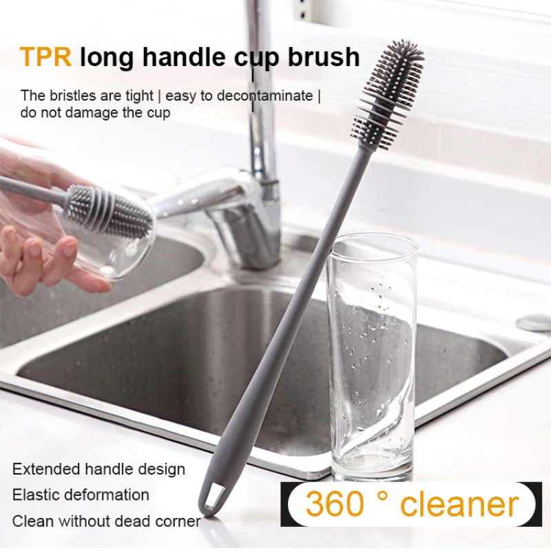 Силиконовая щетка для чашек, приспособление для очистки стекла, кухонный инструмент для очистки, длинная ручка, стеклянная бутылка